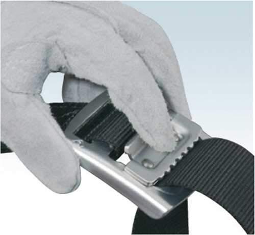 ■革手袋でも操作が簡単な軽量アルミフィンガーバックル。