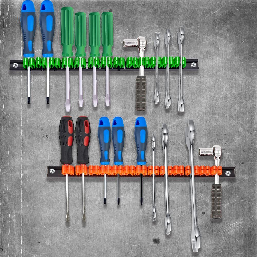 【色々な場所で大活躍】どんどん増えていく工具箱の中身の整理に便利なツールホルダーは、スクリュードライバー、スパナ、エクステンション、プライヤー、ペンチ、ニッパーなど小さな工具を整理し簡単にアクセスできます。また、地下室、オフィス、倉庫、ガレージの壁、キッチンなど。必要とする場所どこにでもツールオーガナイザーを取り付けることができます。省スペースで、引っ掛けも取り出しも便利です。