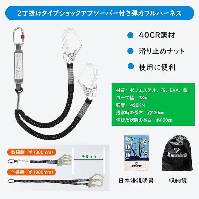 [Jisentoll] ランヤード 新規格適合 フルハーネス用 ランヤード 胴ベルト型用ランヤード 墜落制止用器具ランヤード 二丁掛け 電気工事 建設工事 現場 一般高所作業用 使用可能質量100kg以下