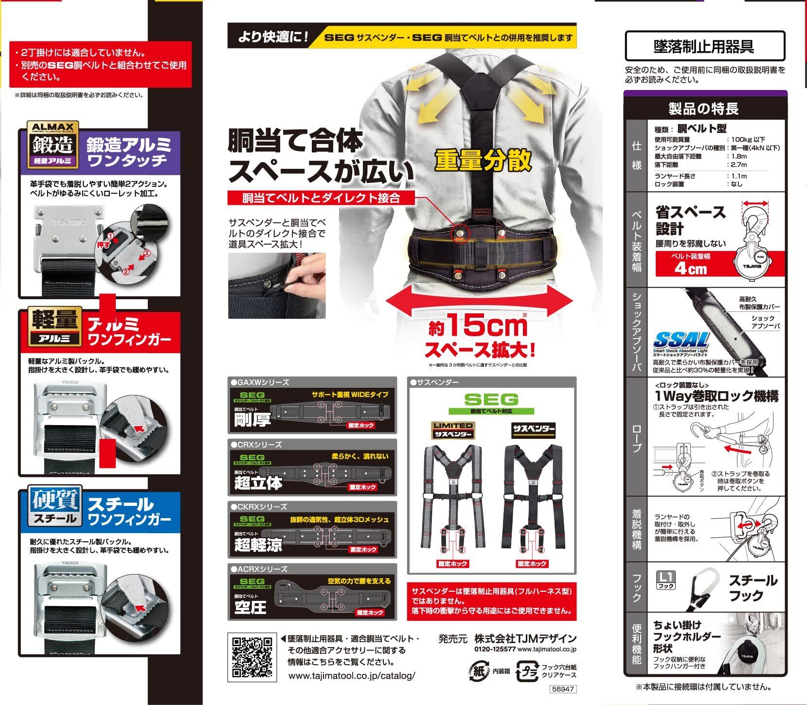 ●ベルト装着スペースわずか4cm(D環止め(2穴)使用時)です。●邪魔にならない小型巻取器(直径57mm)です。●ちょい掛けフックホルダーを採用しています。