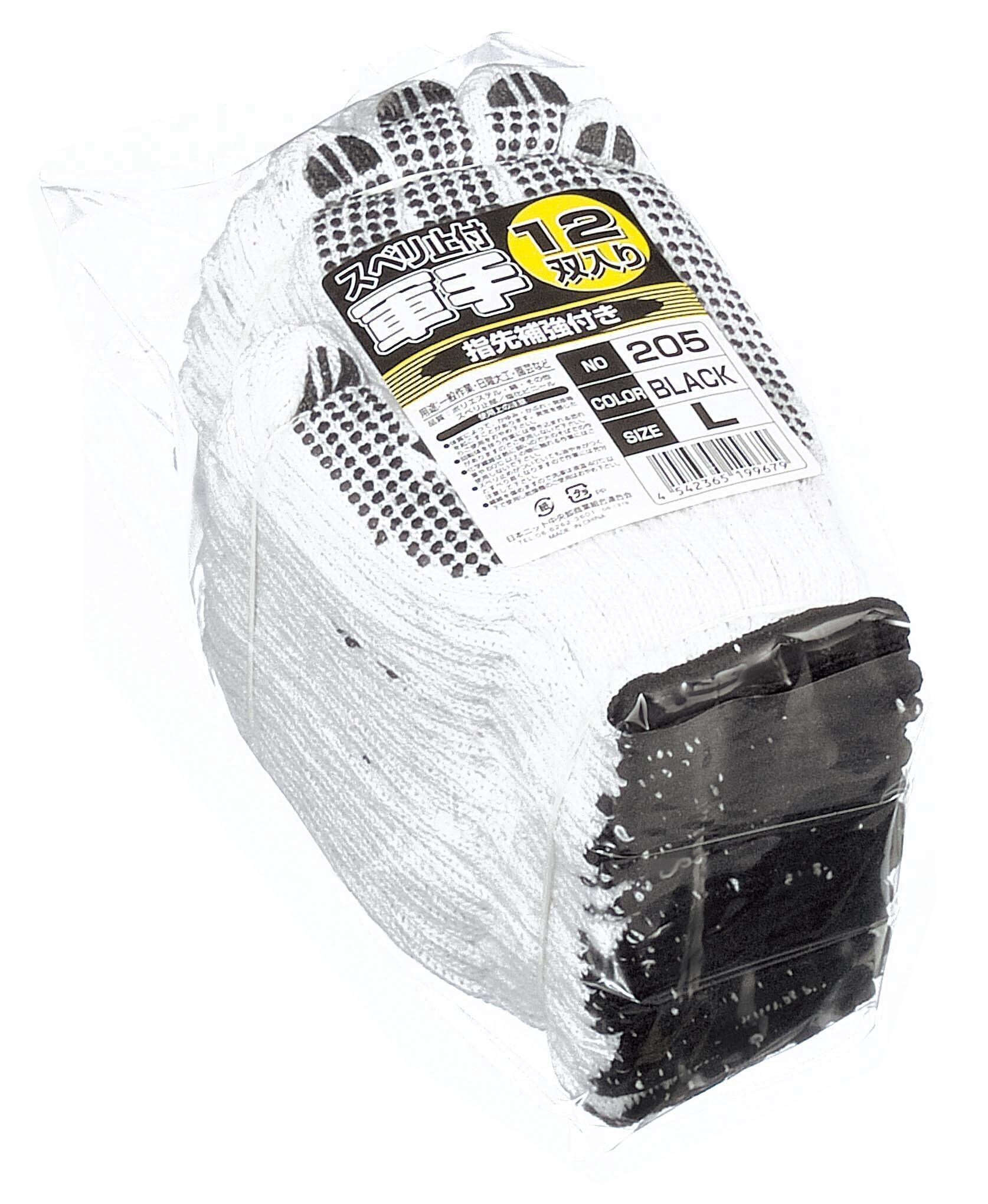 おたふく手袋(Otafuku Glove) スベリ止め軍手 [7ゲージ スベリ止め:塩ビ] #205 L ブラック 【12双組】