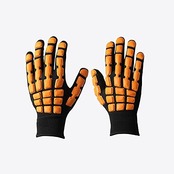手甲保護手袋 まもるくん 。手甲にある衝撃吸収セルが、打ち損じや挟み込みなどの衝撃を軽減します。