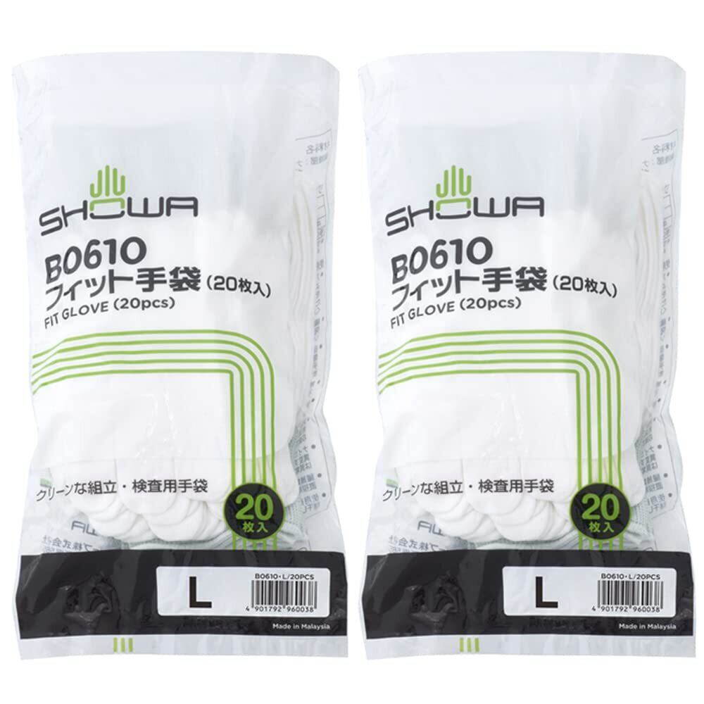 ショーワグローブ(Showaglove) 作業用手袋 低発塵手袋 B0610 フィット手袋 Lサイズ 10双(20枚入) ×2個セット