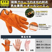 【 本革耐熱 グローブ】 素材自体が柔らかく、快適な上に断熱でもある高機能な耐熱手袋です。お洒落なカラーがヤル気にさせる耐熱グローブで日常が楽しくなります!薪ストーブやBBQ、アウトドアに最適な薪を運ぶ、くべる、着火後に組み直すなどヘビーデューティーな使い方から、また陶芸の窯出しや、高温になる愛車の手入れなど趣味の時間にもお使いいただけます。