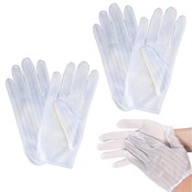 【商品パッケージ】帯電防止効果のある白静電気防止手袋が2組入っており、着用して精密作業が可能です。