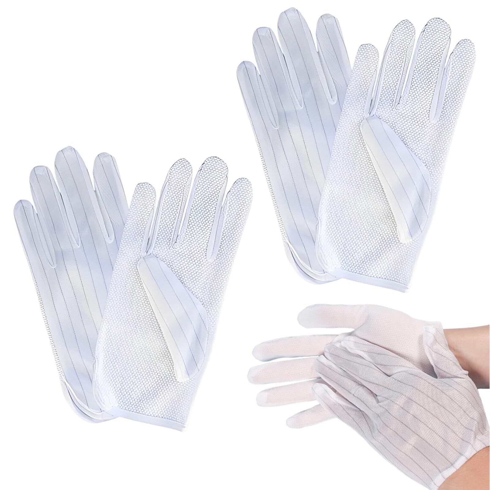 [KVKIE] 静電気防止手袋 絶縁手袋2組 ホワイトノンスリップ静電気 グローブ 静電気除去 品質管理検査作業精密機器用 絶縁グローブ (M)