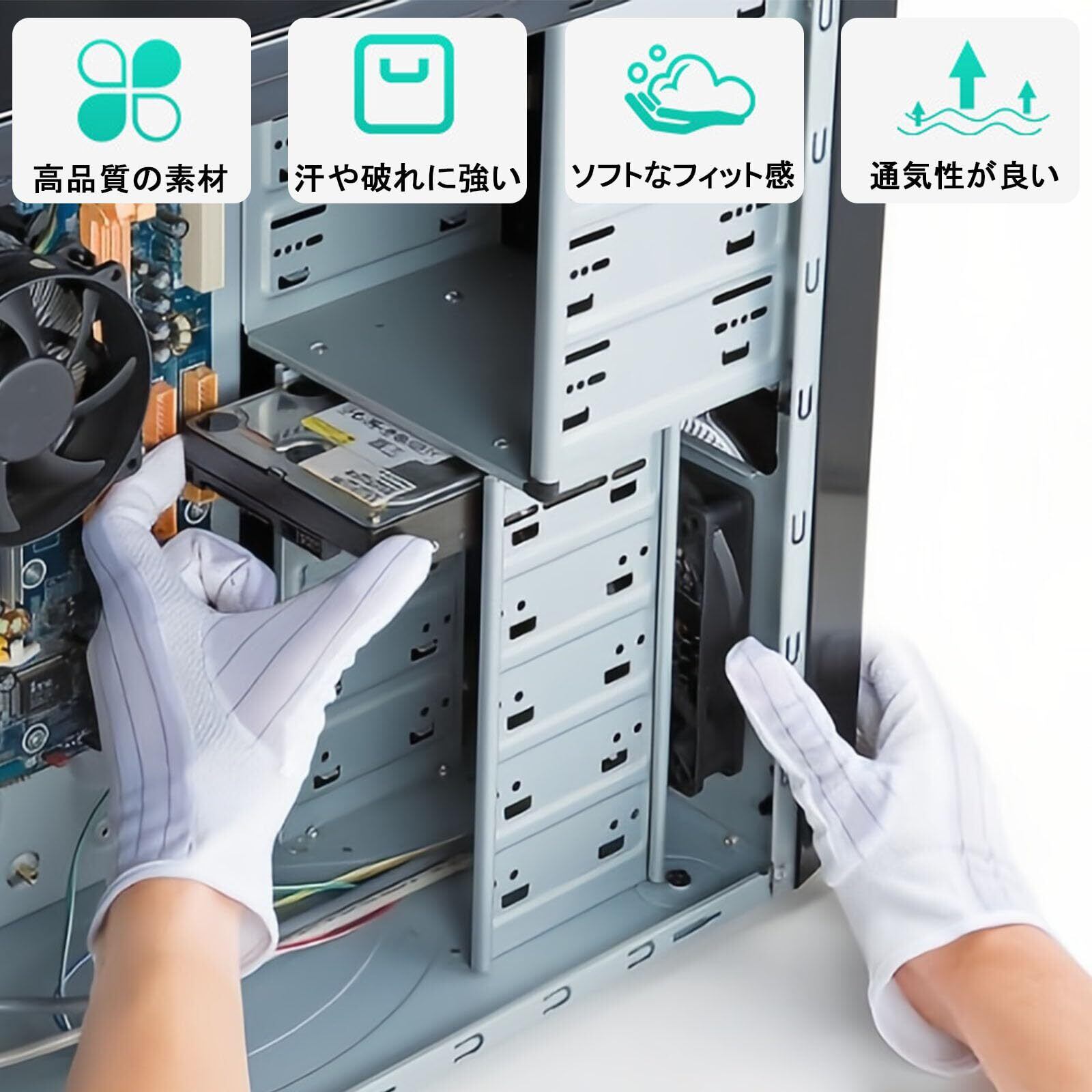 【幅広い用途】電子製品の梱包・輸送はもちろん、精密機器の組立作業、製品検査作業、工場部品の流れ作業、印刷、園芸、DIY、清掃などの様々な作業に適した静電気除去 手袋です。