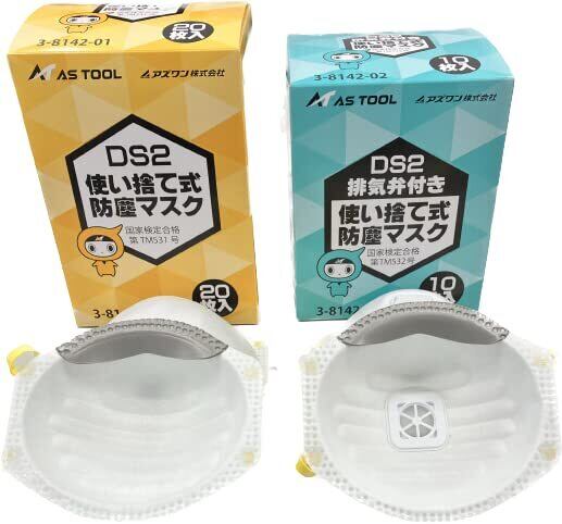 アズワン 使い捨て式防塵マスク DS2 (N95 同等品) 排気弁無 1箱 20枚入 国家検定合格品 3-8142-01
