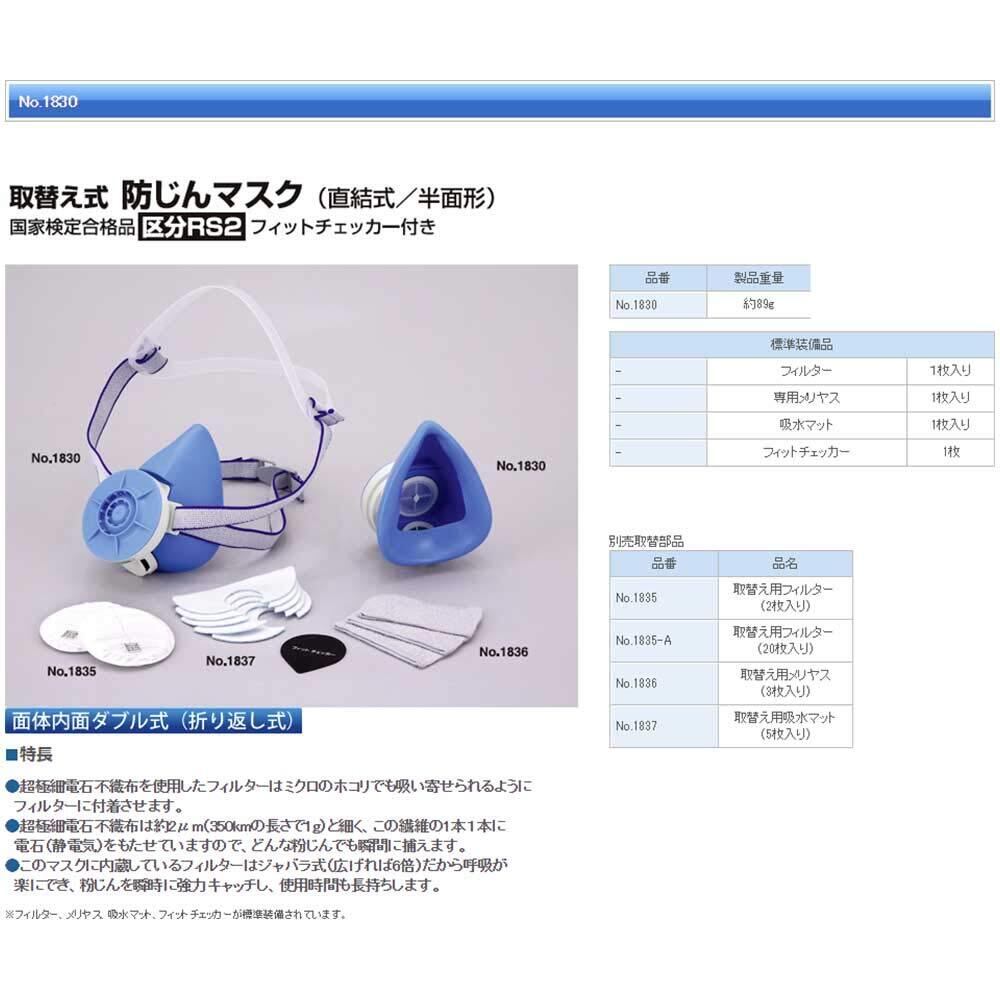 TOYO取替え式 防塵マスク No.1830 国家検定合格品 区分RS2
