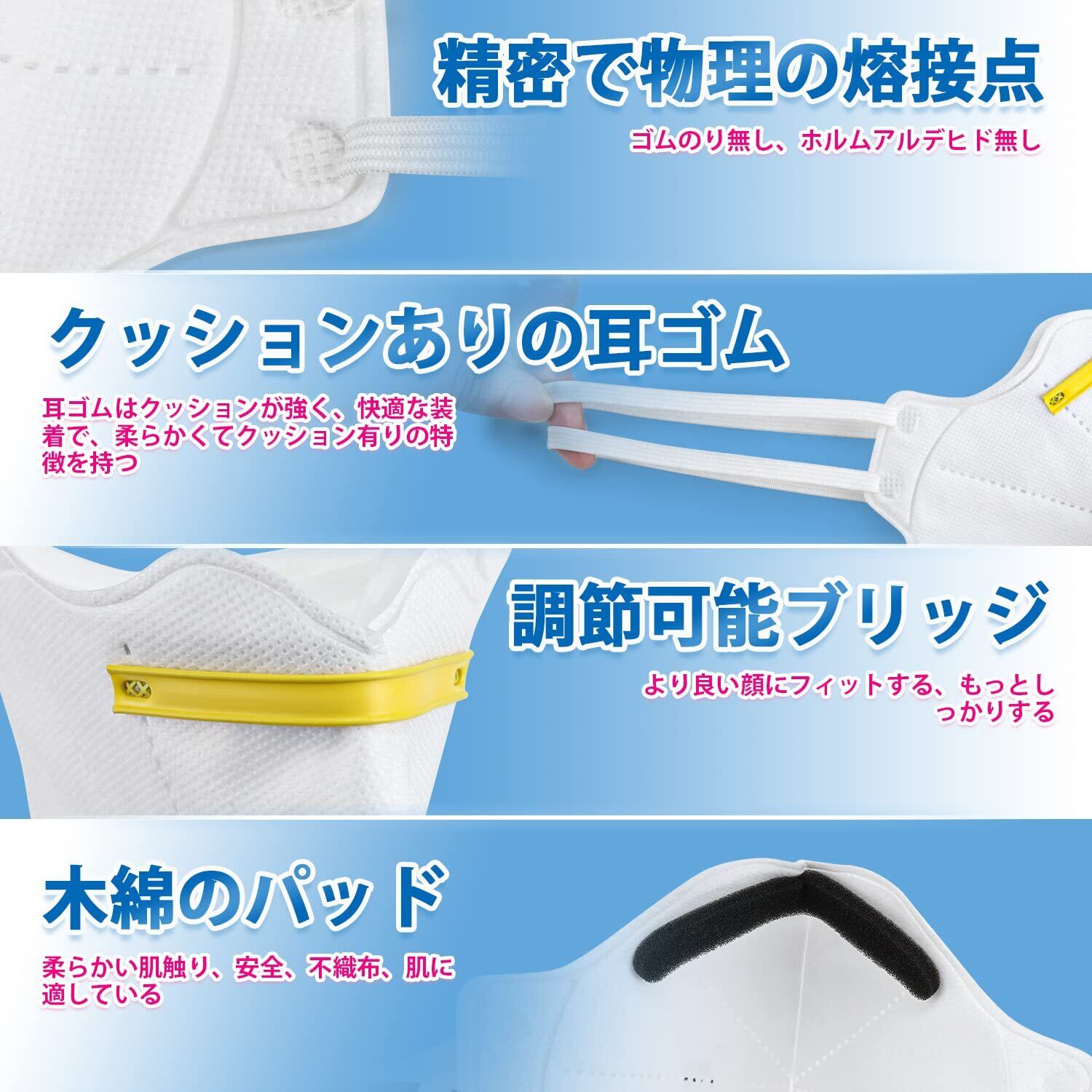 アメリカのNIOSHに承認されたN95マスクです。N95防護レベルを満たしています。メルトブローン布、柔らかな厚手の不織布で粒子95%以上をブロックします。花粉、PM2.5やハウスダスト等をブロックします。