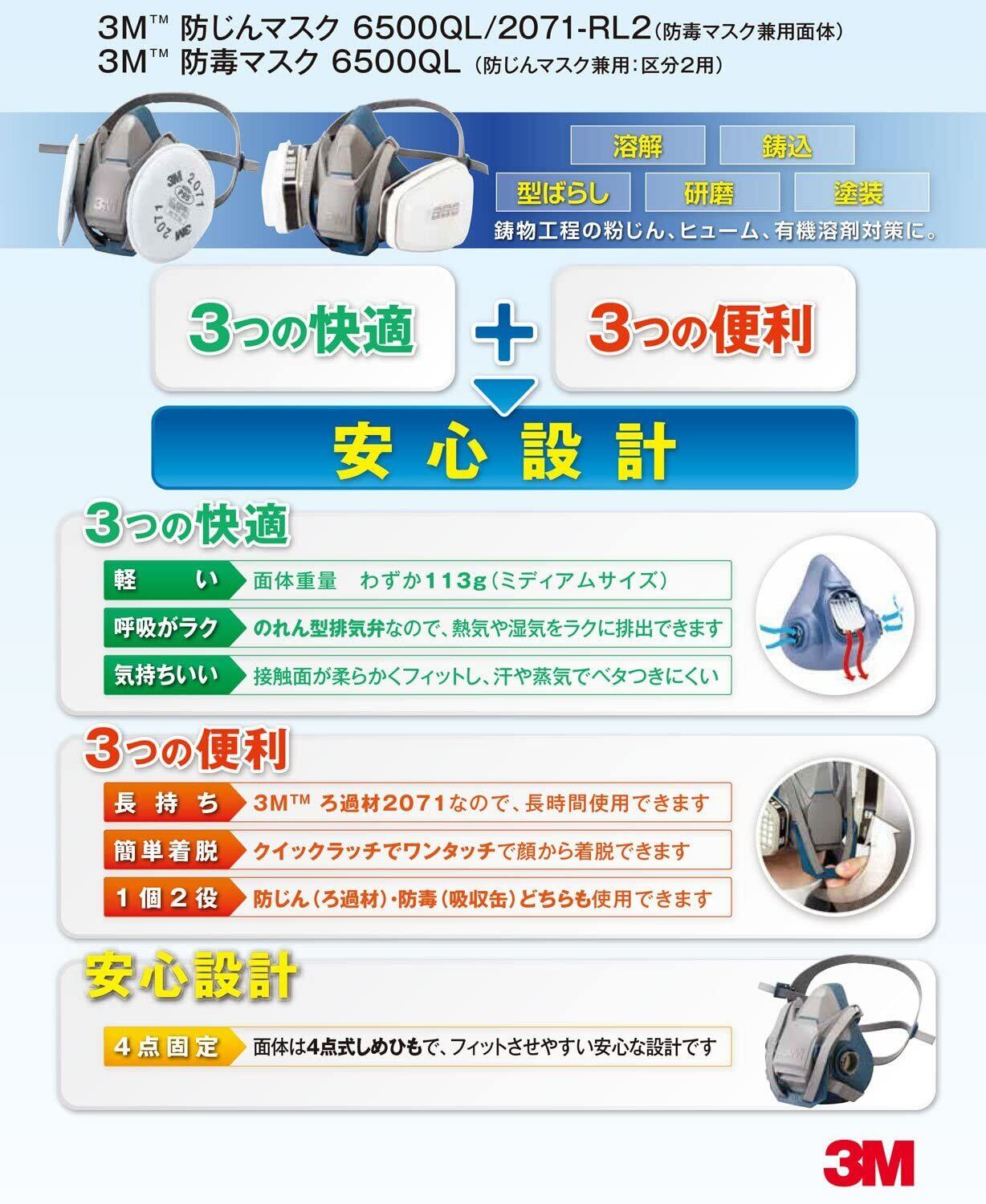 [スリーエム] 防毒マスク 面体 6500QL ミディアム (防じんマスク兼用:区分2 区分3)