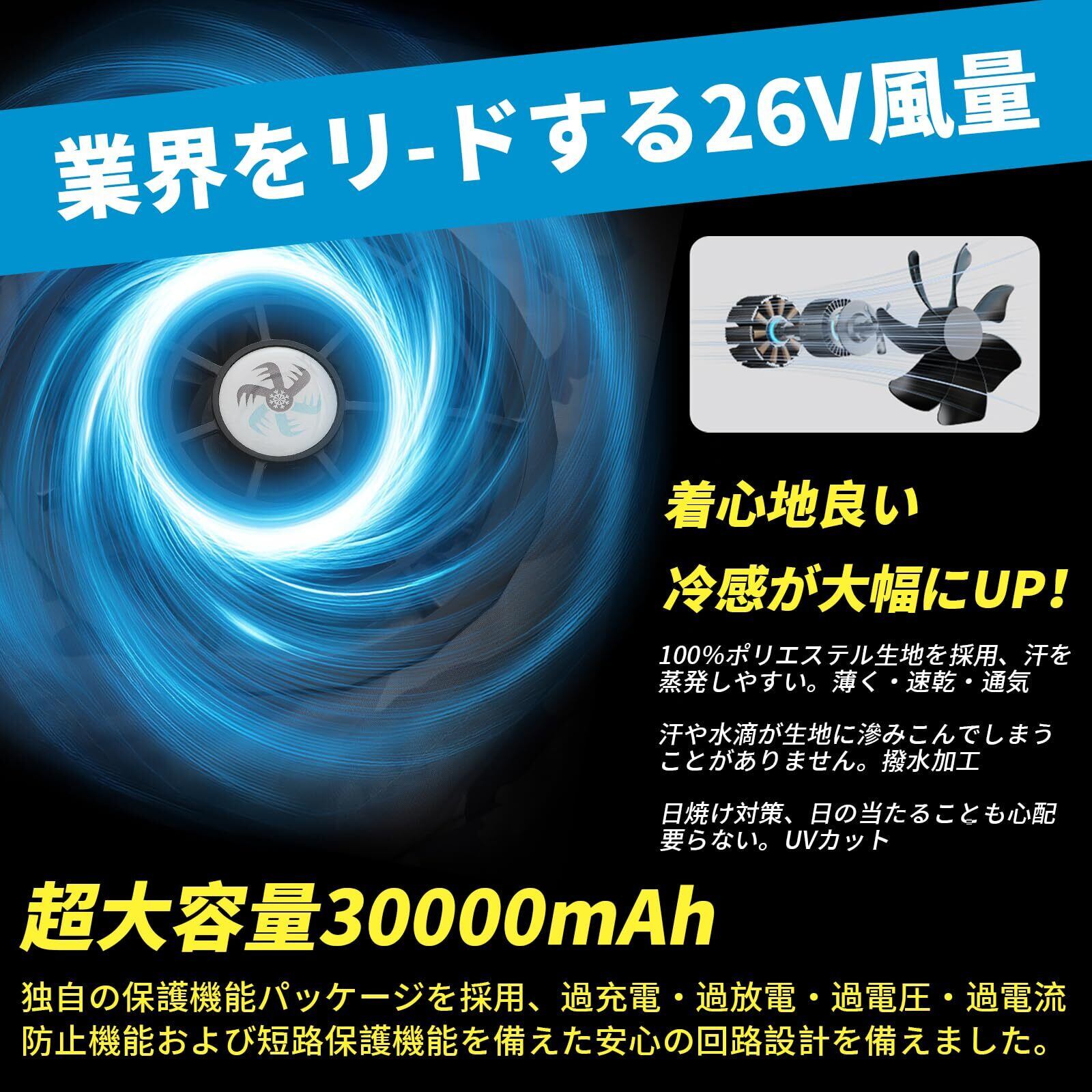 [ZHICHUAN] 空調作業服 ファンバッテリーセット 【2025速冷ファン & 30000mAh大容量バッテリー】26V高出力 4段階風速調節 最大50時間連続使用 撥水加工 UVカット 暑さ対策 男女兼用