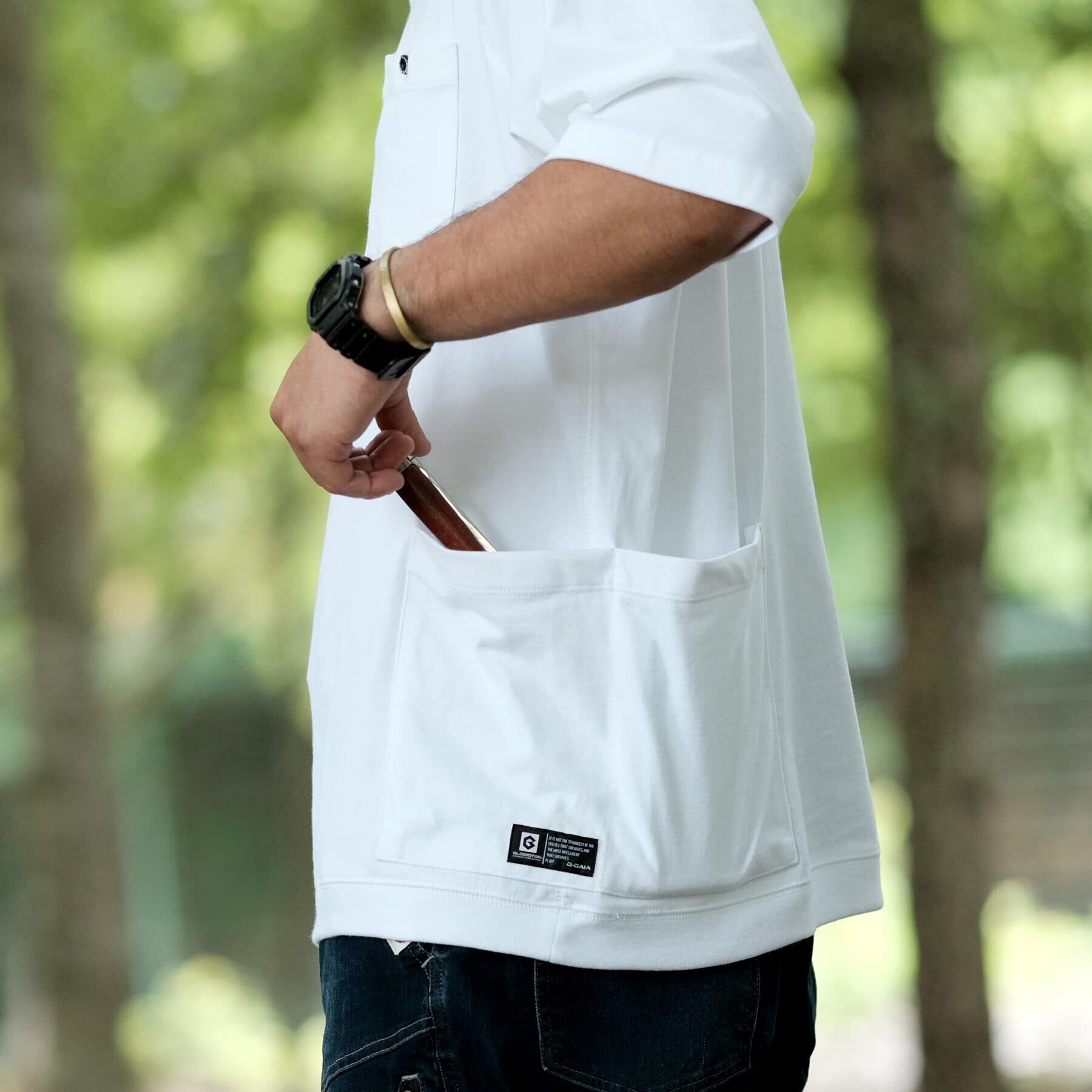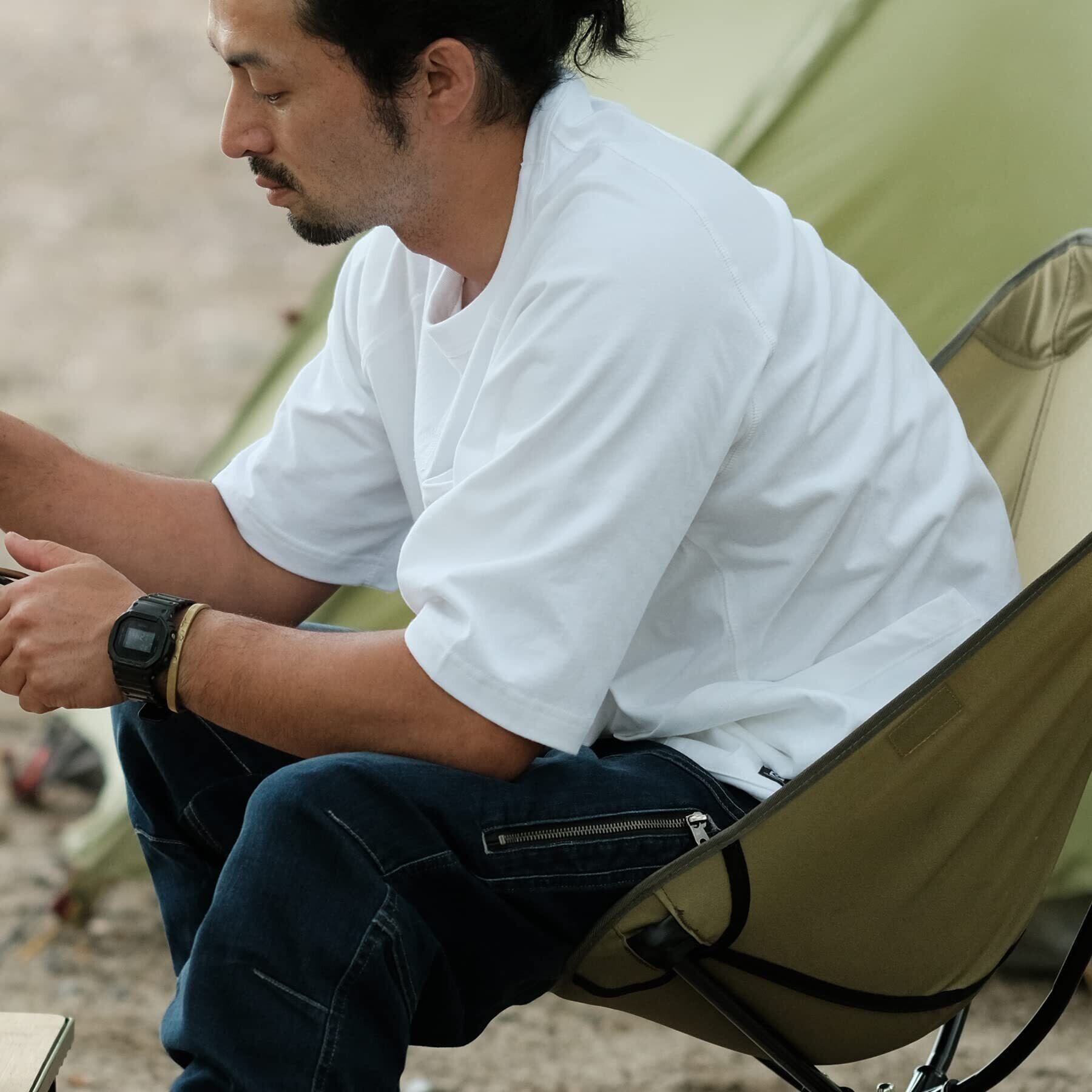 適度にゆったりとしたシルエットで、必要なものがすっきり収まる5ポケット付き。ワークとカジュアルの垣根を超えたオールラウンドなTシャツ。