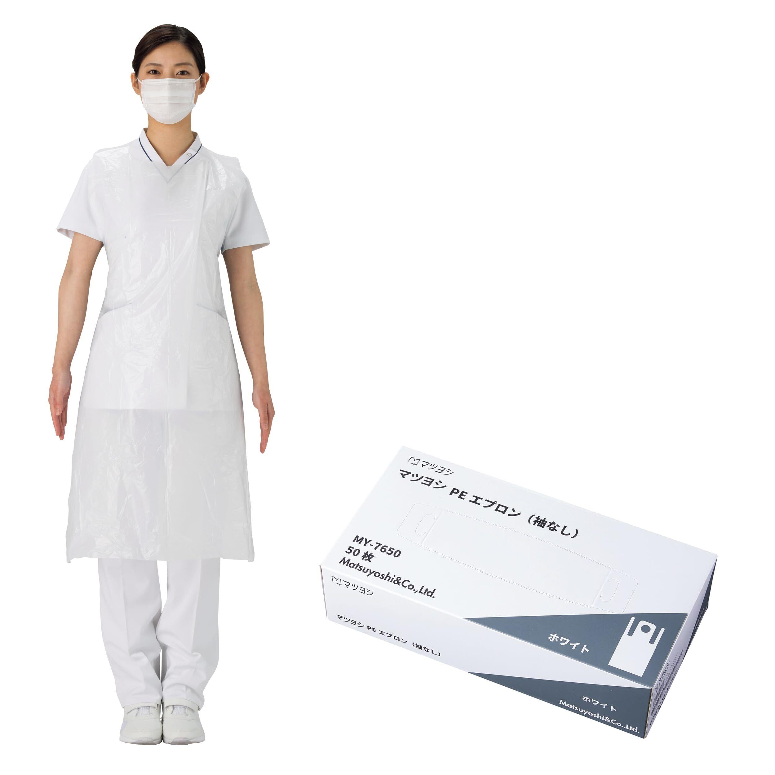 [マツヨシ] 使い捨て エプロン 袖なし プラスチックエプロン 50枚入り 1箱 ホワイト ポリエチレン 衛生用品 感染対策 介護 病院 クリニック 松吉医科器械