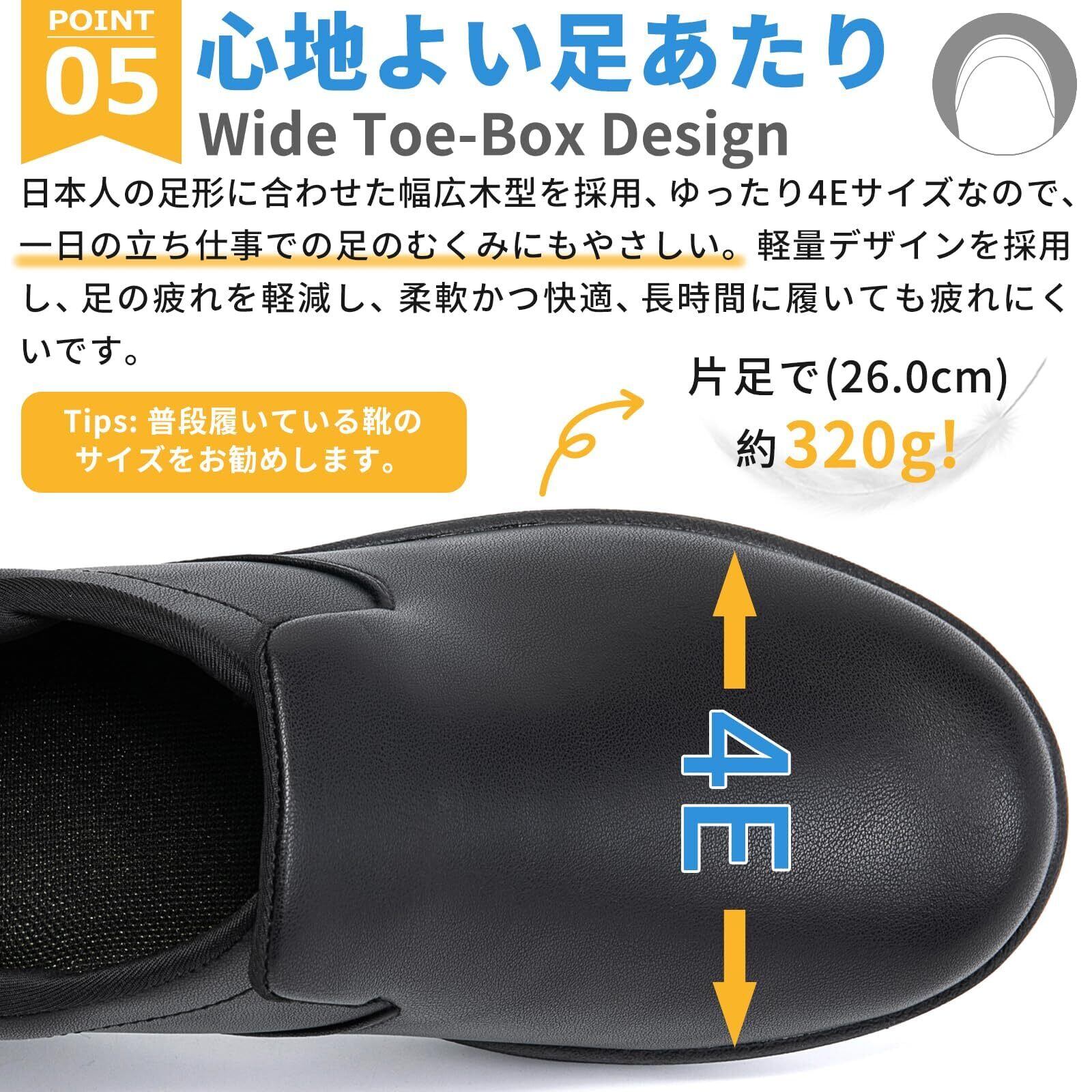 [SOARHOPE] 立ったまま履ける コックシューズ キッチンシューズ スリッポン 脱ぎ履きしやすい 防水 耐油 ハイグリップ 滑らない メンズ レディース 厨房靴 厨房用 調理靴 4e 幅広 軽量 飲食店 調理場 黒 白