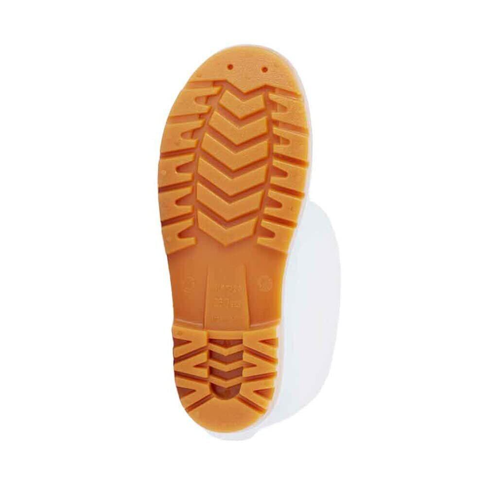 食品を取り扱う作業に最適の耐油長靴。汚れがつきにくいデザインを基本に、長時間使用でも疲れにくいよう履きやすさを重視して作りました。鋼製先芯入りでつま先部への衝撃(圧迫)から足を保護。抗菌加工裏地を使用し雑菌の繁殖を防止。吸汗素材で足ムレも改善。水切りが良く滑りにくい意匠の耐油底を採用。26cmの場合:長さ385mm(ヒール部含む) 片足重量約1,040g ※記載内容の仕様及び外観は、改良のため予告なく変更されることがあります。