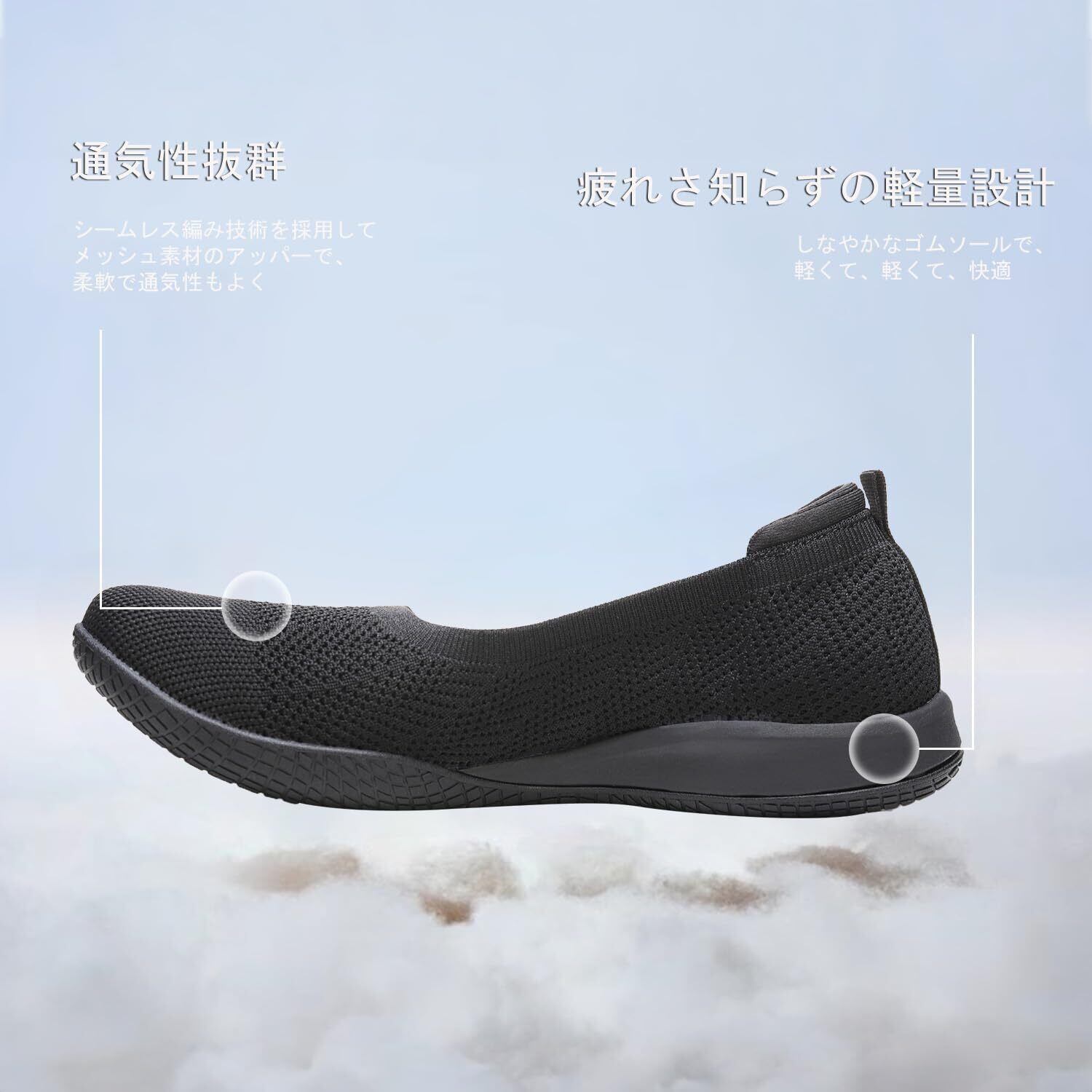 【通気性、柔軟性】通気性抜群の上、足の健康にもサポートします。ニット素材で通気性も良く、さわやかな履き心地を。