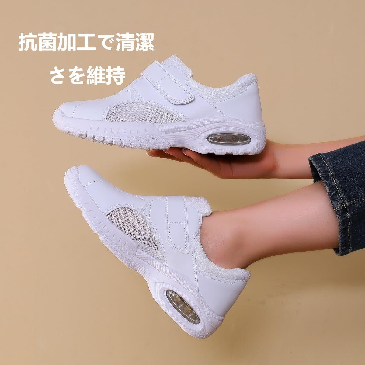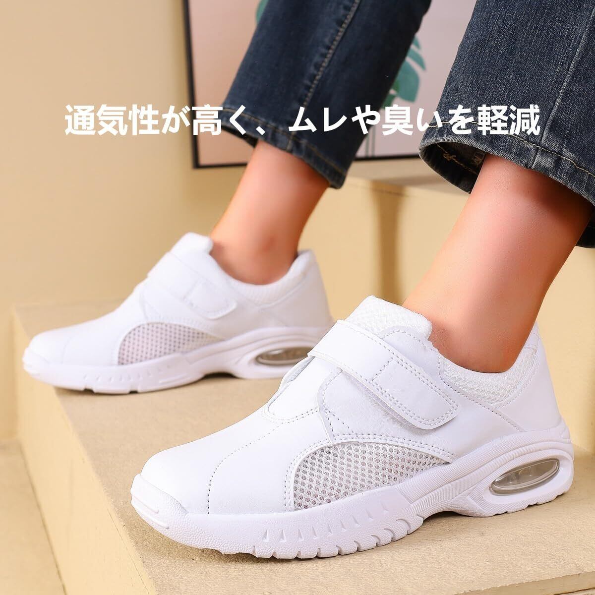 [RemeeHi] ナースシューズ 白 疲れにくい エアー付き スリッポン エアーシューズ 幅広 軽量 介護シューズ ナースサンダル 看護師 医療 病院 介護 お立ち仕事 通気性 ダンススポーツランニングシューズ 大きいサイズ中高齢者靴
