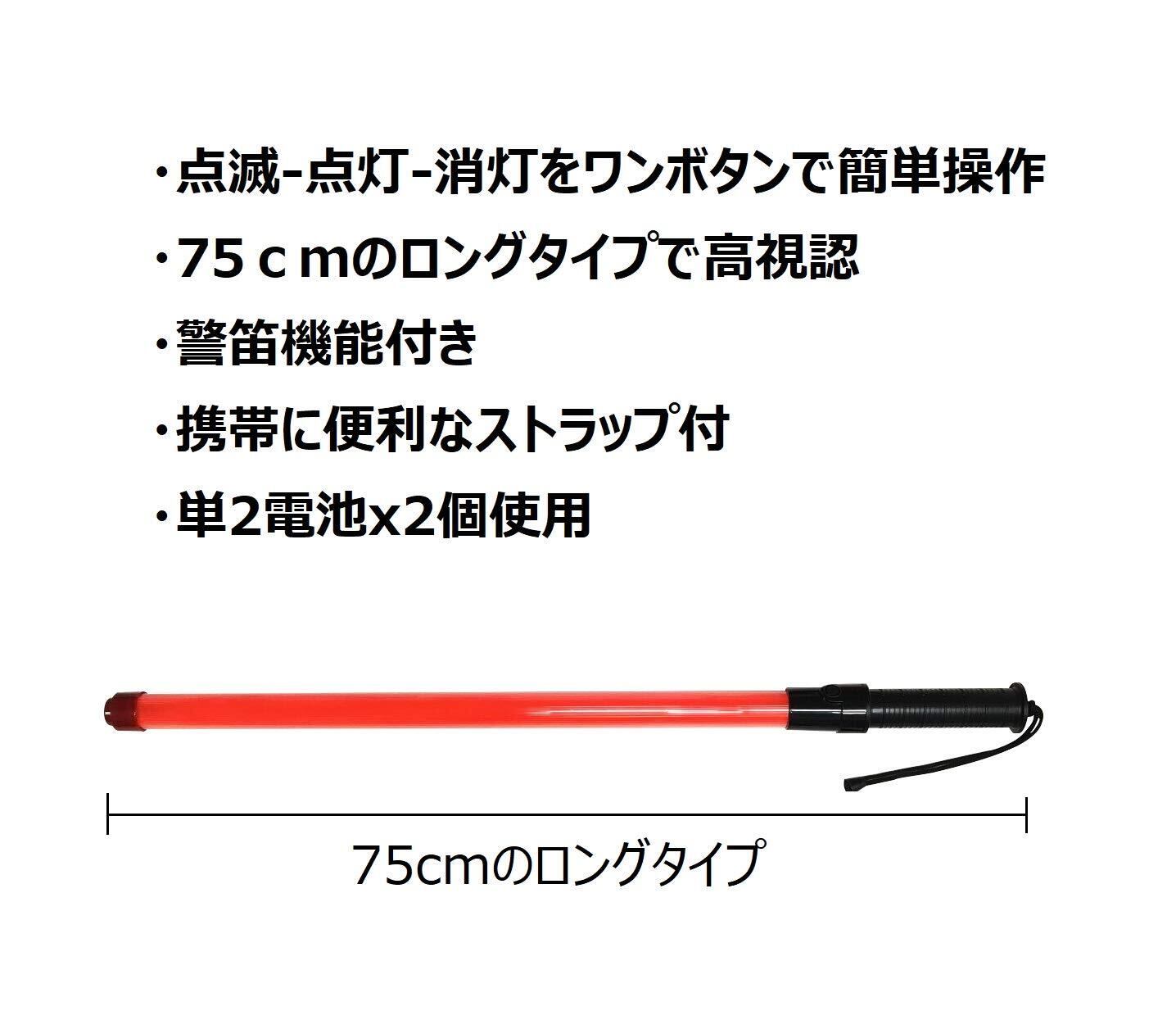 警笛付きLED誘導ライト 全長75cm 点灯-連続点灯-消灯 LED光源 ストラップ付 持ち手部ABS 単2乾電池x2本使用(電池は付属しません)