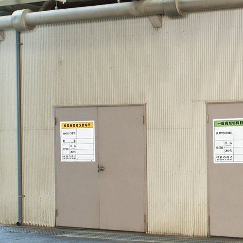 【特長】●環境に配慮した商品です。●環境に配慮した商品です。●平成11年4月1日施行「廃棄物の処理及び清掃に関する法律施行規則」一部改正に伴い、廃棄物保管場所には法的に設置することが義務づけられました。【用途】【仕様】●表示内容:産業廃棄物保管場所●取付仕様:穴4ヵ所●縦(mm):600●横(mm):600●取付方法:ビス止め(ビス別売)【材質/仕上】●再生ポリプロピレン(再生材50%)