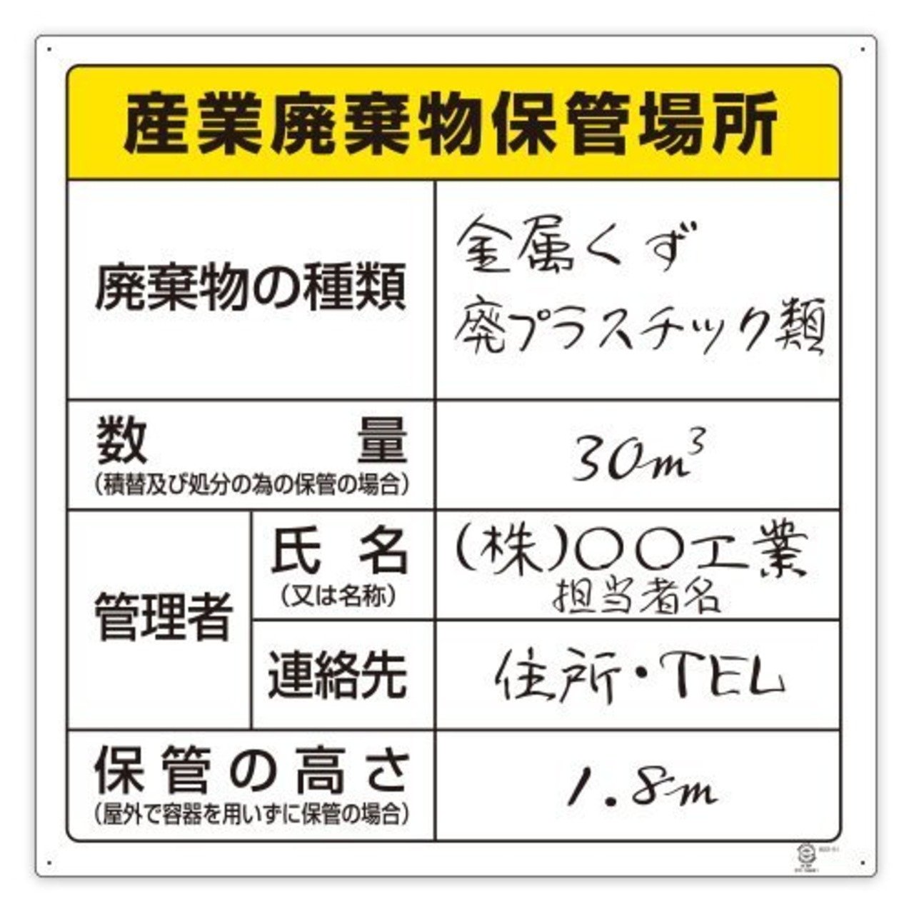 ユニット 廃棄物標識 産業廃棄物保管場所 600×600mm エコユニボード 822-91