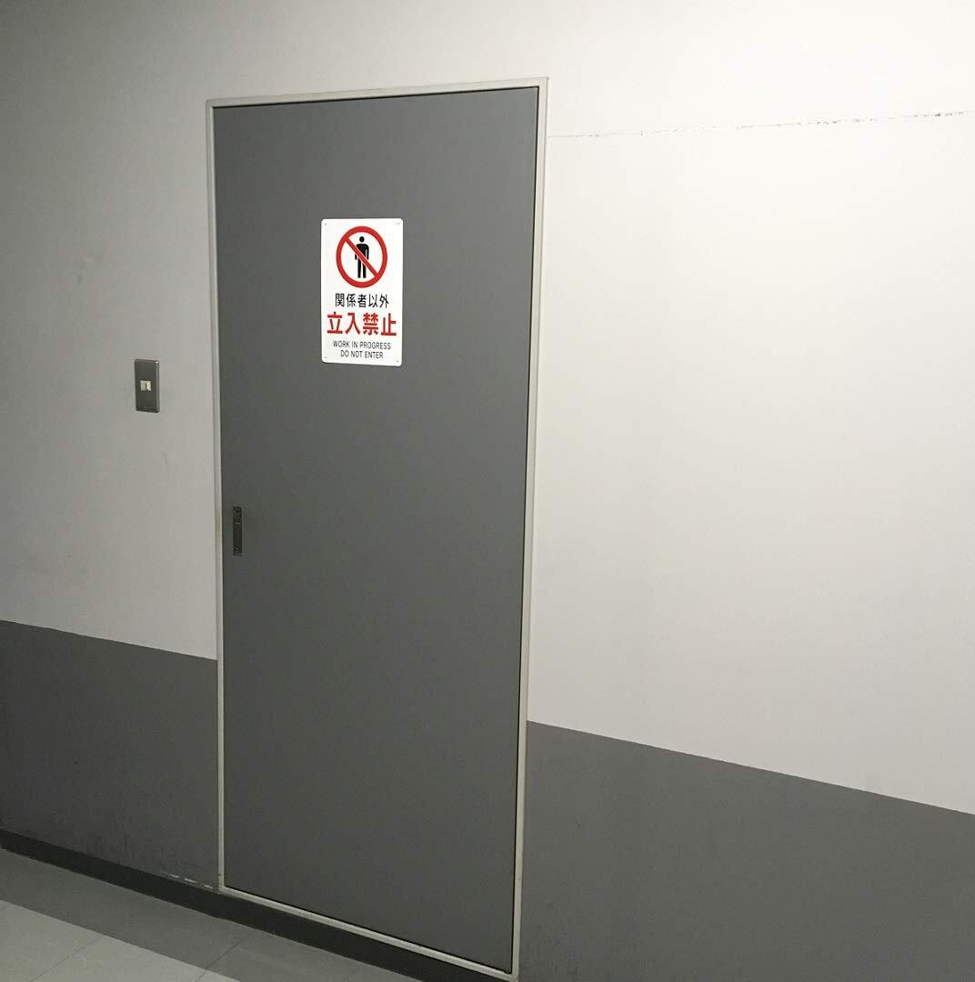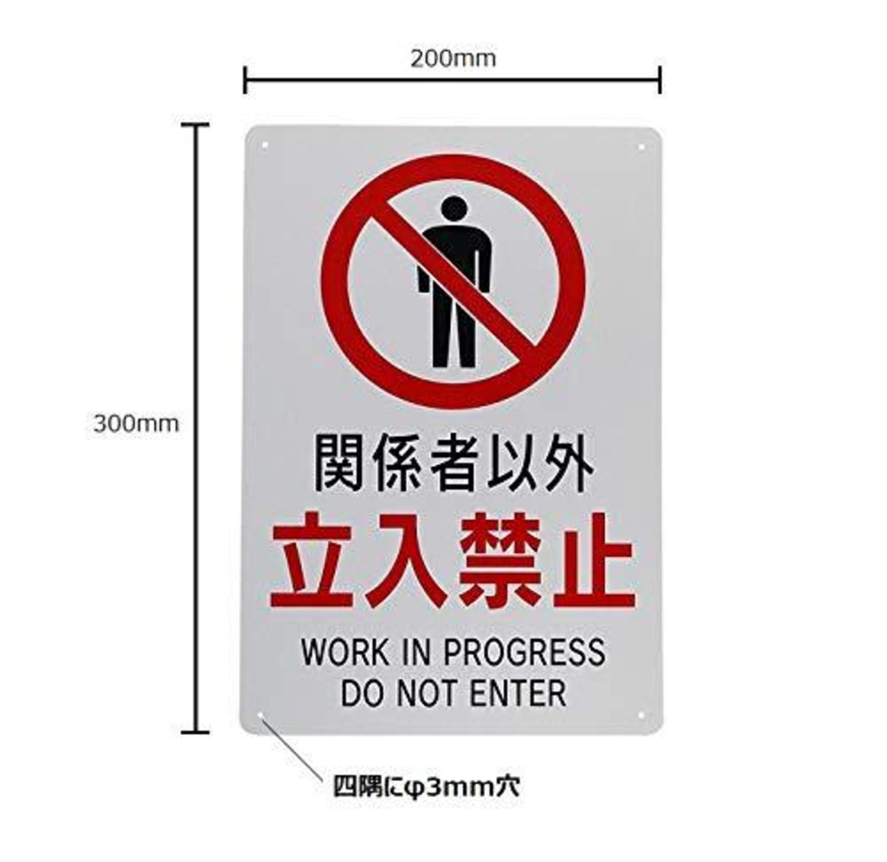 安全標識 『関係者以外立入禁止』 (小) PP 300x200mm 厚さ0.8mm 径3φmm穴×4隅 バイリンガル表記