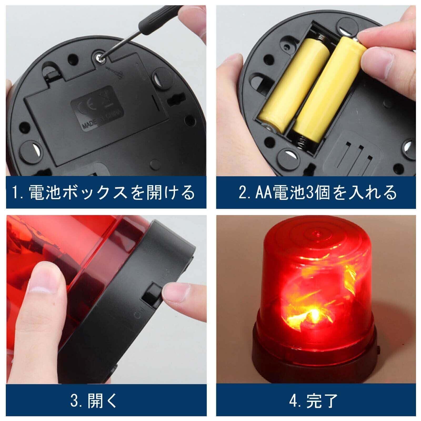 回転灯 LED警告灯 安全警告灯 回転ライト 電池式 小型回転灯 非常ライト 誘導 防犯 作業車 消防車 救急車などに適用 舞台ライト パーティー 工場 建設現場 公共の場所LEDタイプ レッド | Bloomia