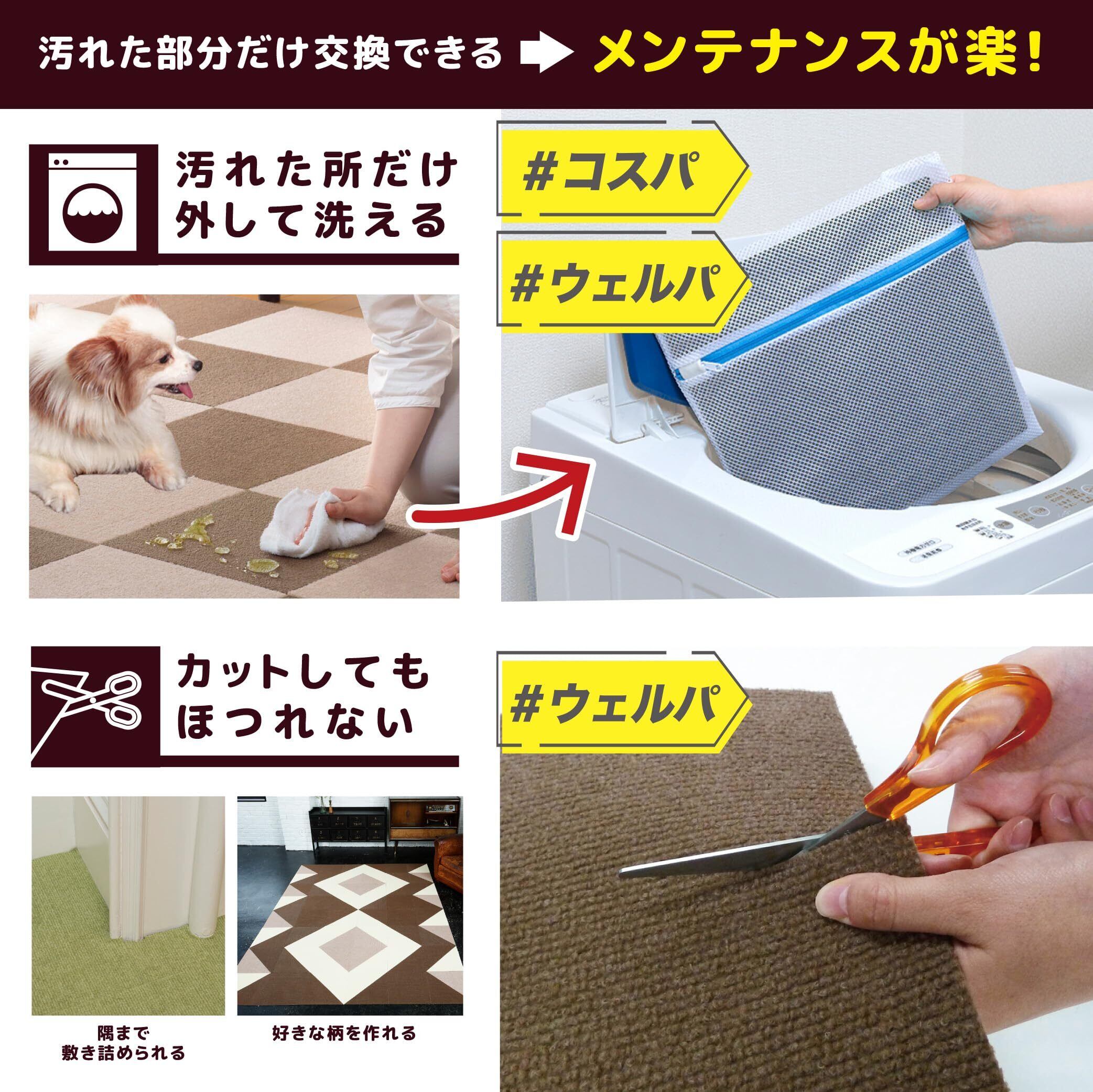 床面のホコリ等を拭き取ってから、商品の裏面のフィルムを剥がしてご使用ください。洗濯機で洗えます。乾燥機不可。