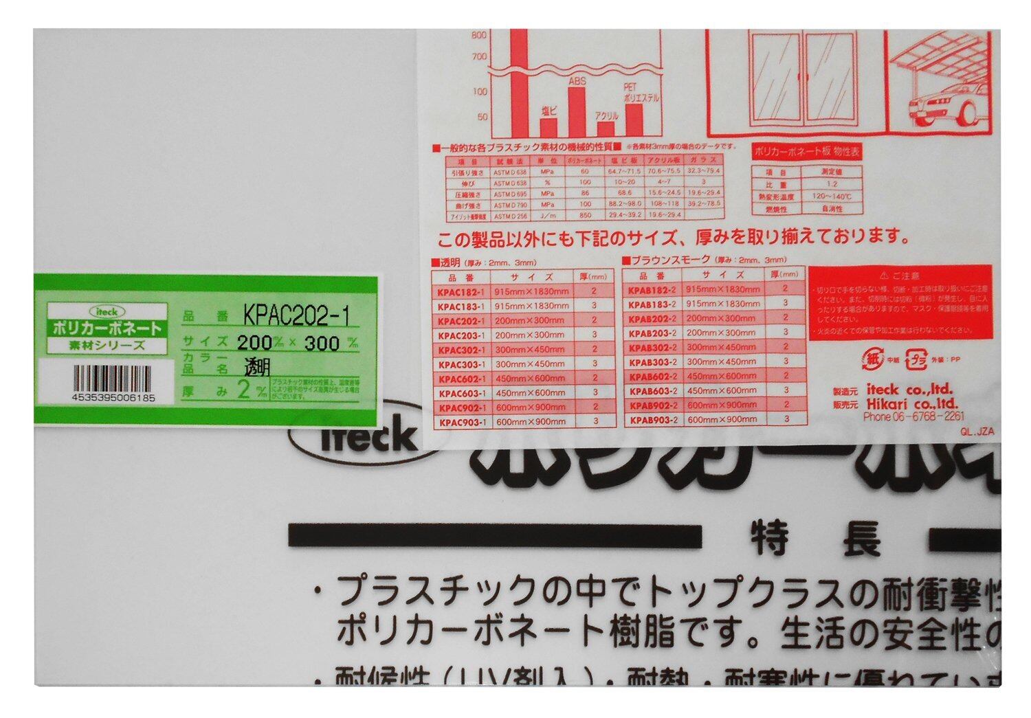 光 ポリカーボネート樹脂板(UV剤入) 透明 200×300×2mm 00869045-1 KPAC202-1