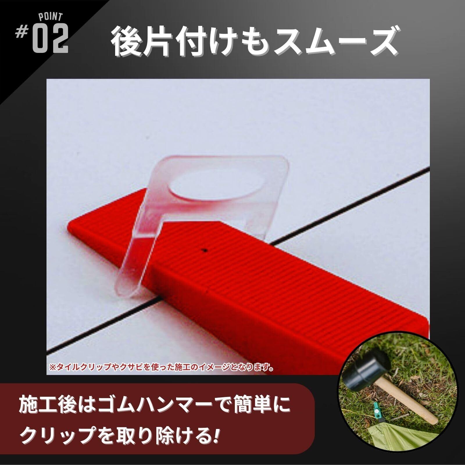 【取り除き簡単】タイルスペーサーの施工後はゴムハンマーなどで簡単にクリップを取り除くことができるので撤収作業も速やかに行うことができます。
