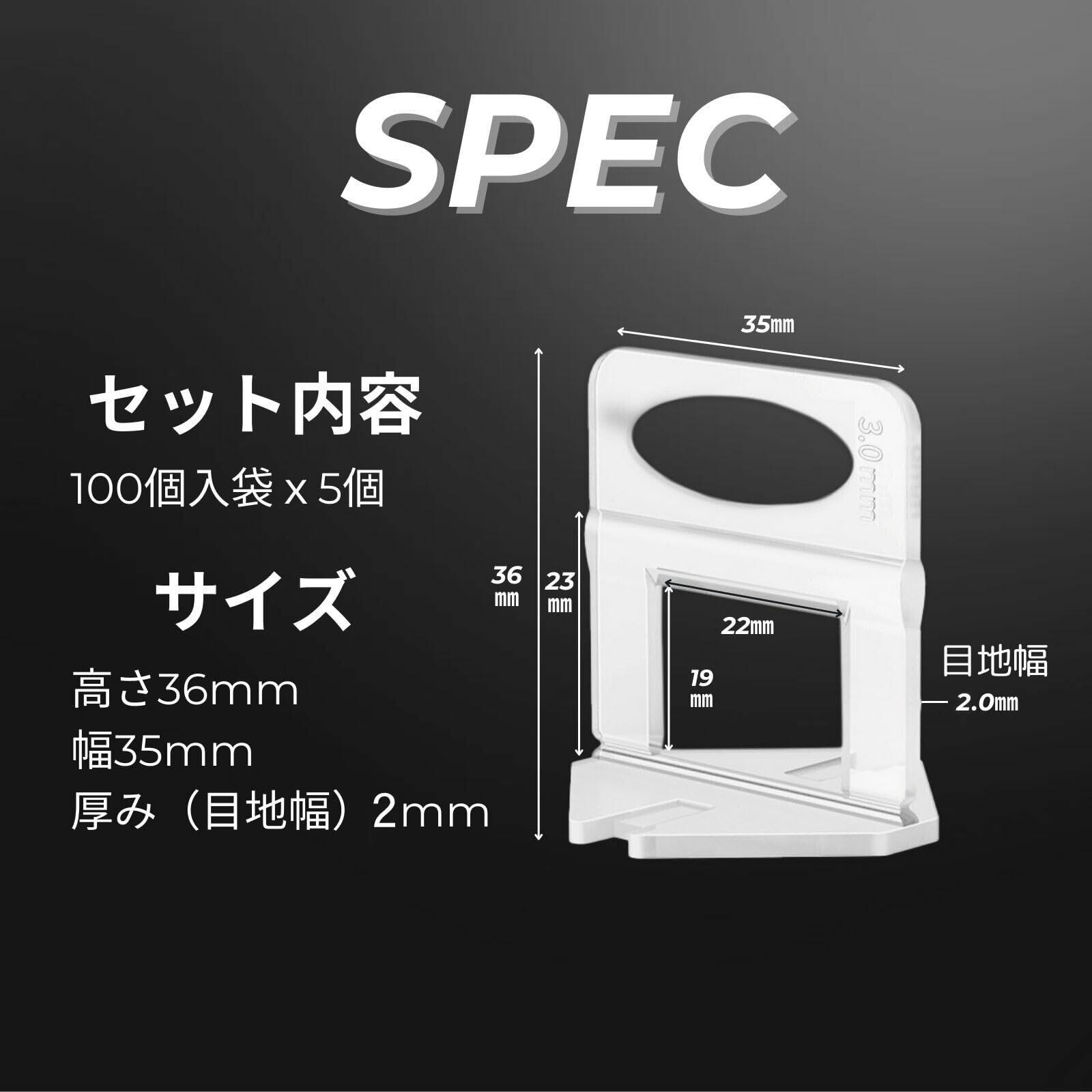 【セット内容とサイズ】100個x5・高さ36mm 幅35mm 厚み(目地幅)2mm
