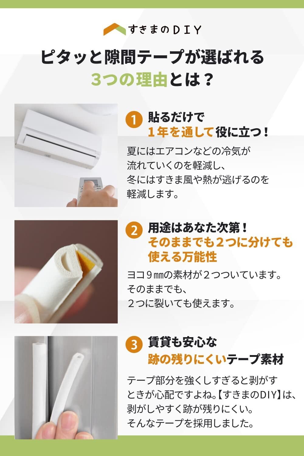 すきまのDIY 【ドアの隙間 防音に】ピタッと隙間テープ すきまテープ 隙間テープ すきま風防止 ドア 窓 すきまパッド シールテープ エアコン効率アップ (白)