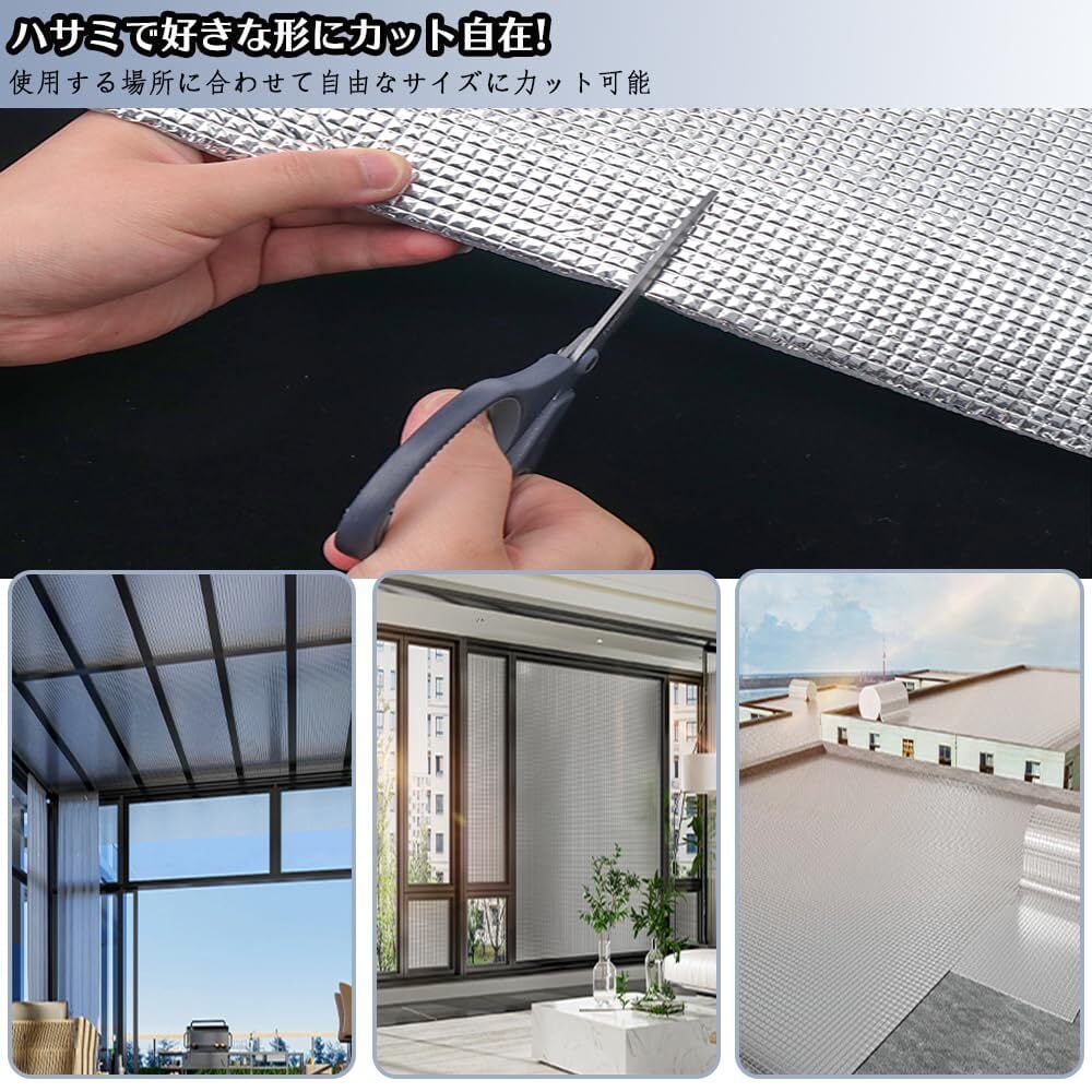【様々な使い方】 窓ガラスに貼ることでお部屋の冷暖房効果をアップ。 車で使用すると夏場の車内温度の上昇を緩和、冬は防寒効果。 クーラーボックスや、ビニールハウスなどDIYにもお使いいただけます。