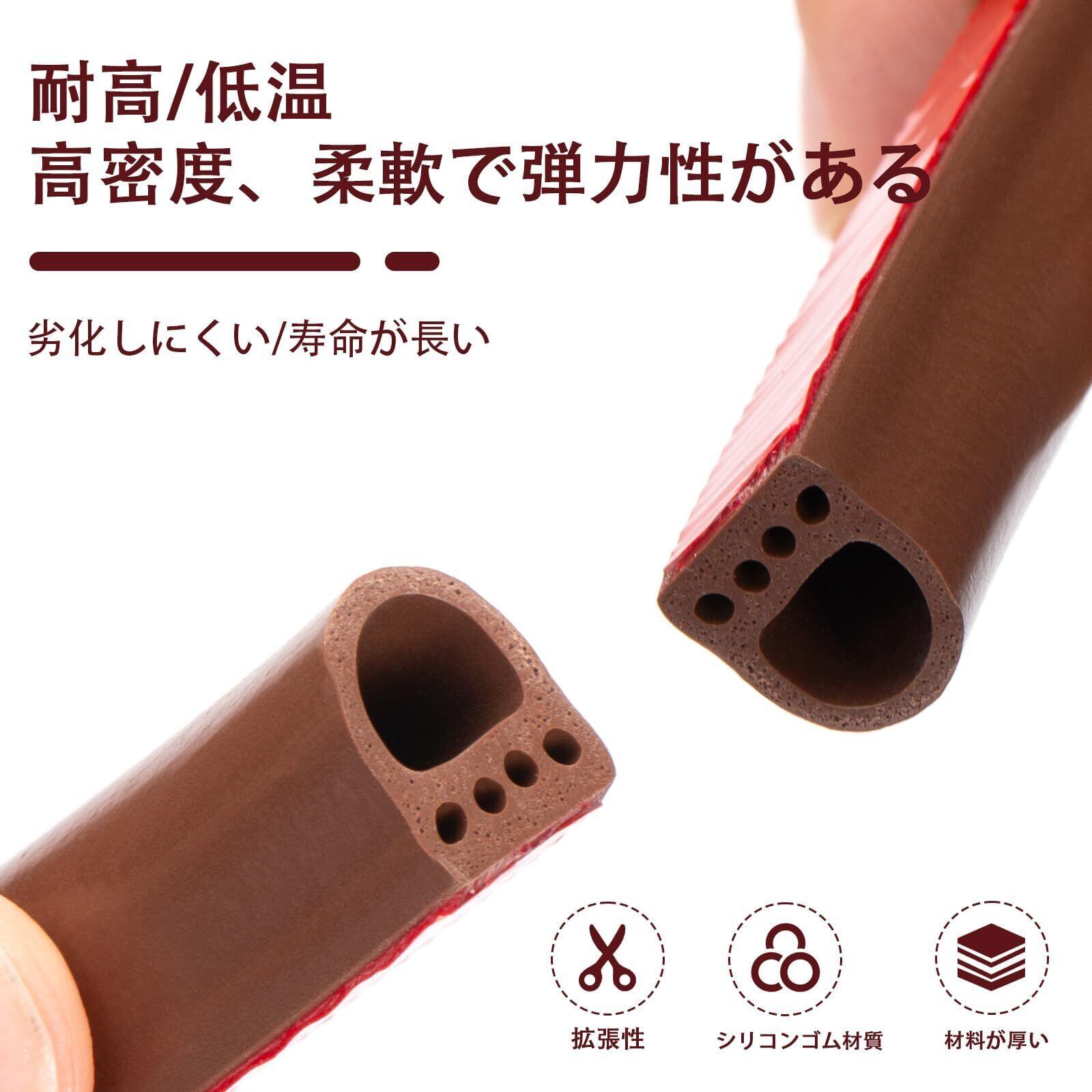 高密度シリコーンゴム素材 隙間テープ すきまテープ 隙間 室内ドアと窓を密封する 高い柔軟性シーリングストリップ 自己接着 気密 防音 防水 防風 保温 老化しにくい(9mm*2mm*6M、ブラウン)