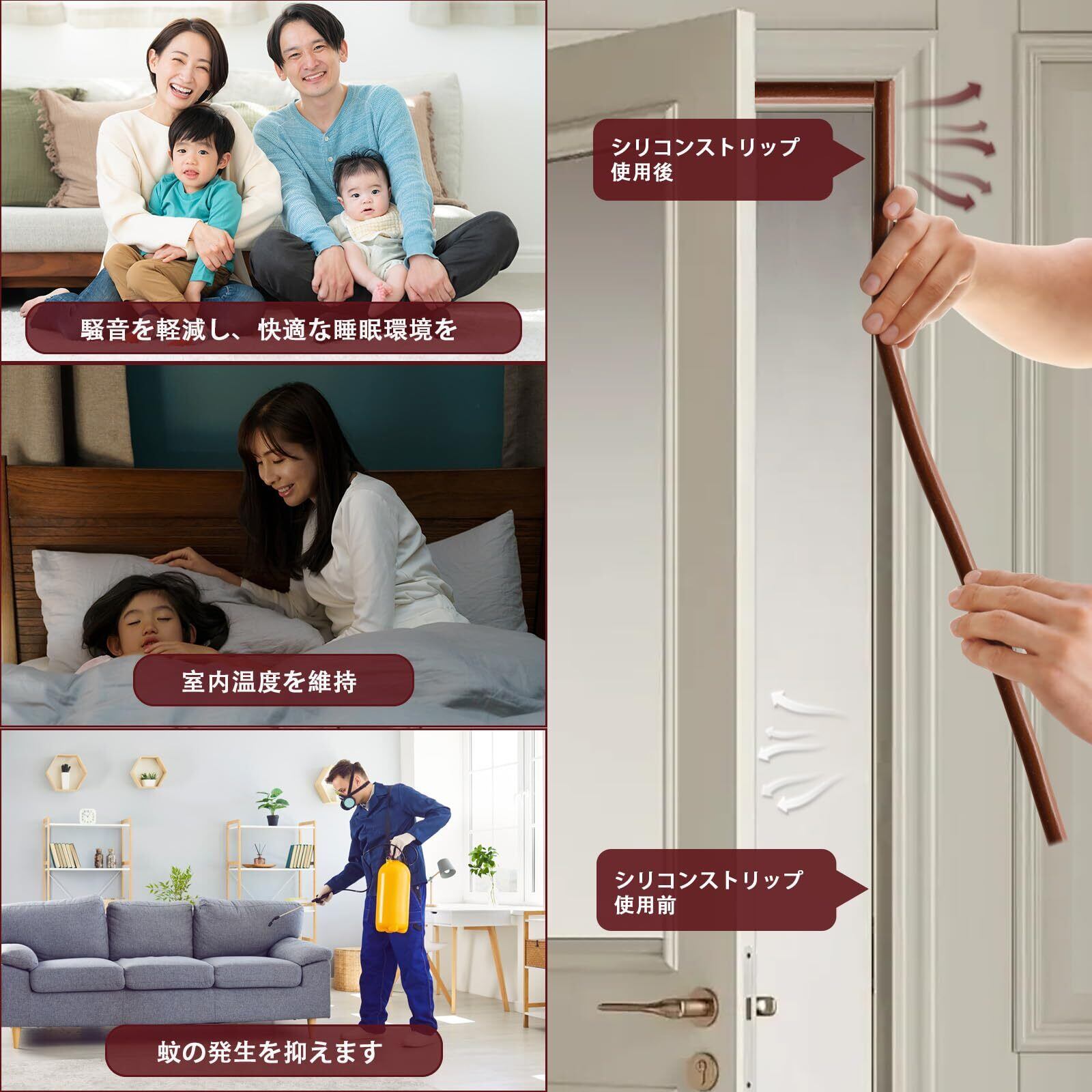 【複数の使用シナリオ】このシリコンストリップは、ドアの隙間、窓の隙間、オーブンのドア、車の遮音など、複数のシナリオに適しています。仕様:1本(6M×1本)、幅:9mm、厚さ:2mm、適用隙間サイズは約1mm〜2mmです。 (※ご注意:本製品にはゴムや接着剤の匂いが残っている場合がございますが、時間の経過とともに匂いは消えていきます。)