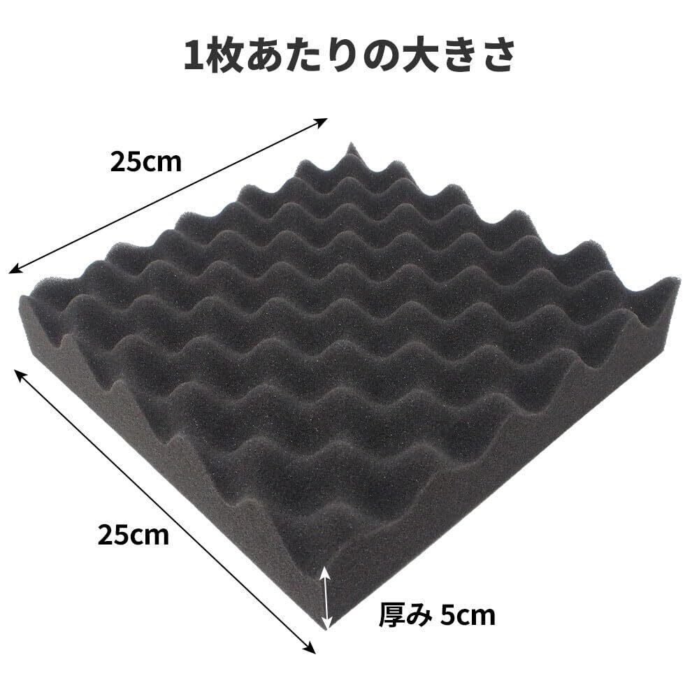 【 すぐ使える 波型5cm 4枚セット 】 防音ファストラボ® 極厚 波型 ウレタンフォーム スポンジ 吸音材 緩衝材 クッション材 25cm×25cm 密度26kg/m3