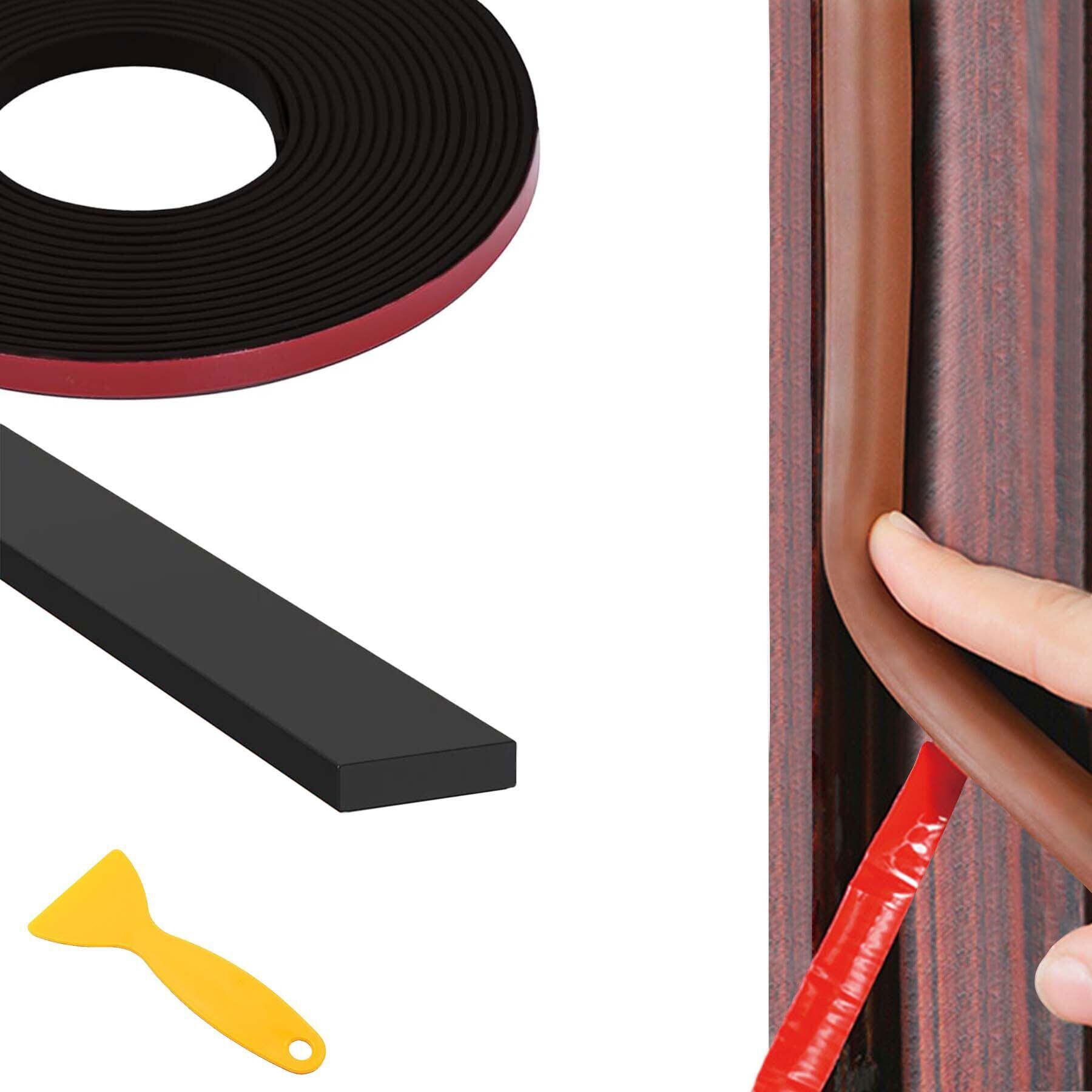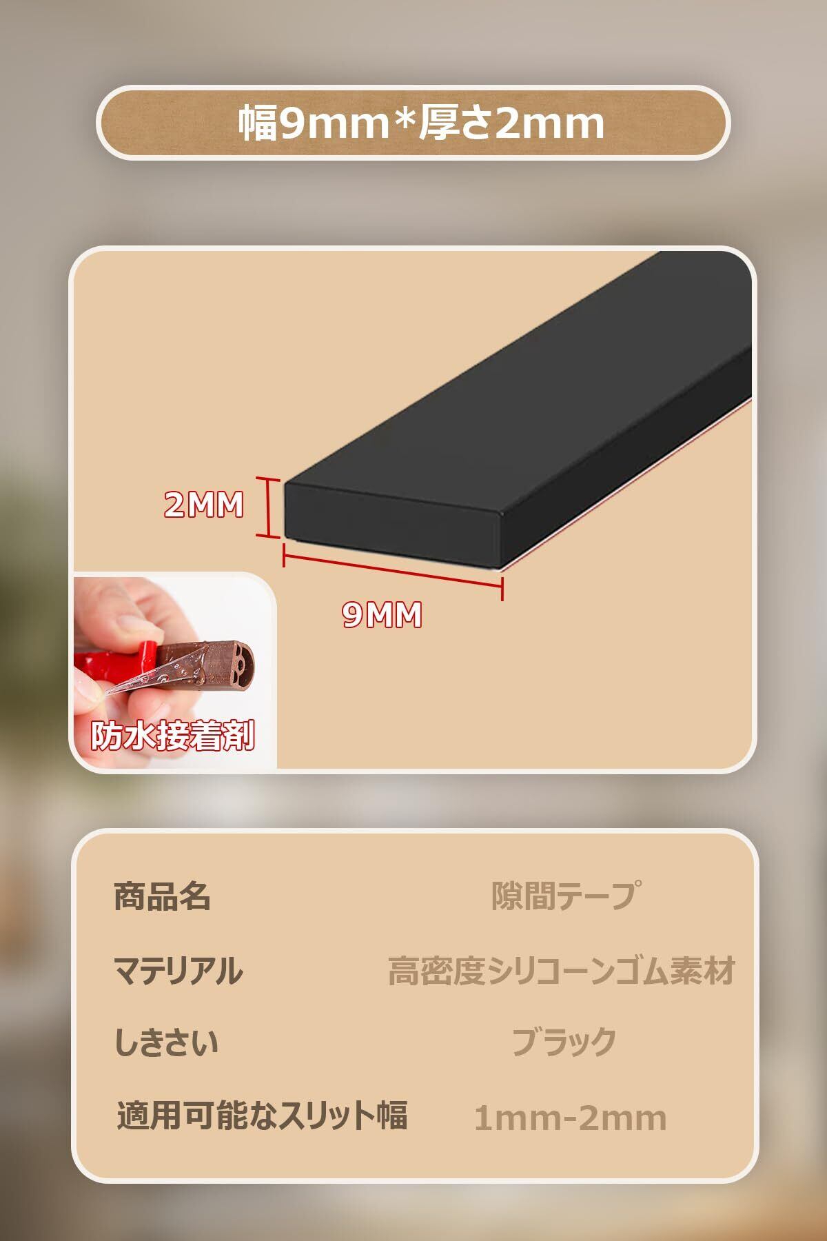 YUNHE 隙間テープ 高密度シリコーンゴム素材 隙間パッキン 防音テープ ゴムパッキン ドア隙間テープ 長さ6M 防音パッキン ドア 窓 気密 断熱 騒音軽減 すきま風防止 粘着テープ付き プラスチックヘラ付属(ブラック, 幅9mm*厚さ2mm*長さ6M) | Bloomia
