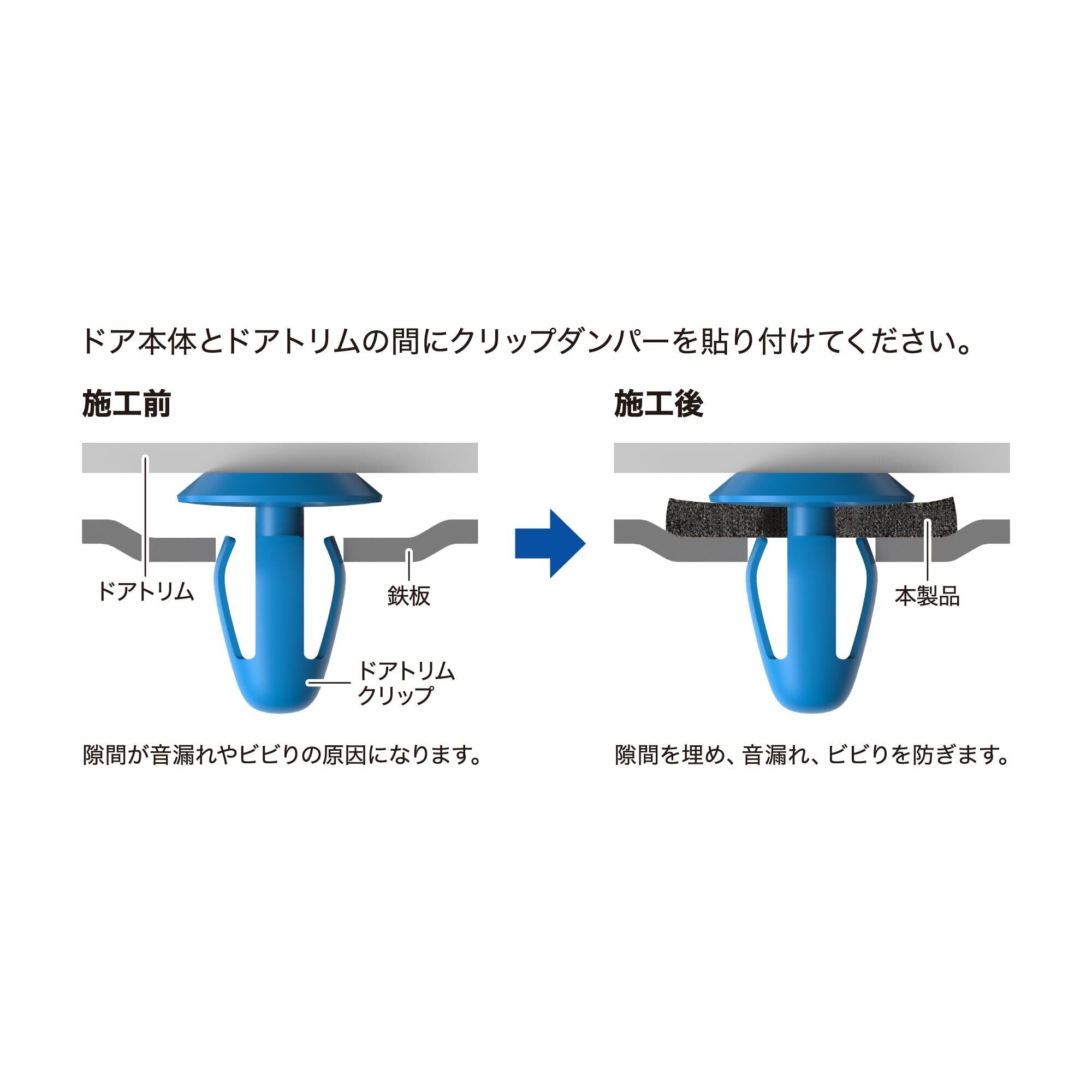 ドアトリムクリップの隙間から漏れる音やビビりまで確実に防音。