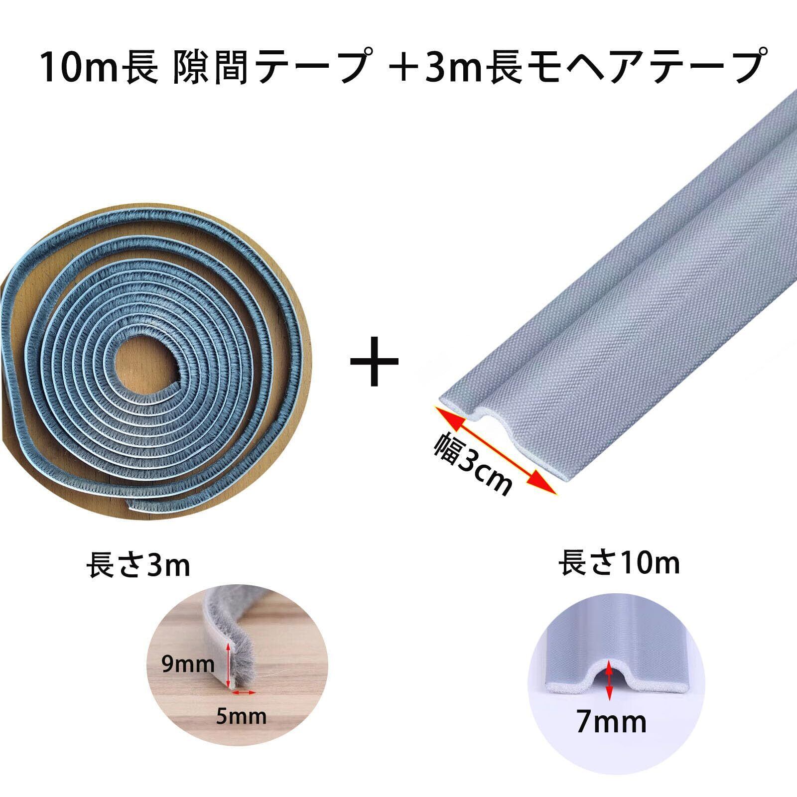 サッシ 隙間テープ 窓 隙間テープ 室内 ドア 隙間 防音 テープ 10m長 すきま風防止 防水 玄関 すきまテープ 防虫対策 (グレー)プラス3mモヘアテープ