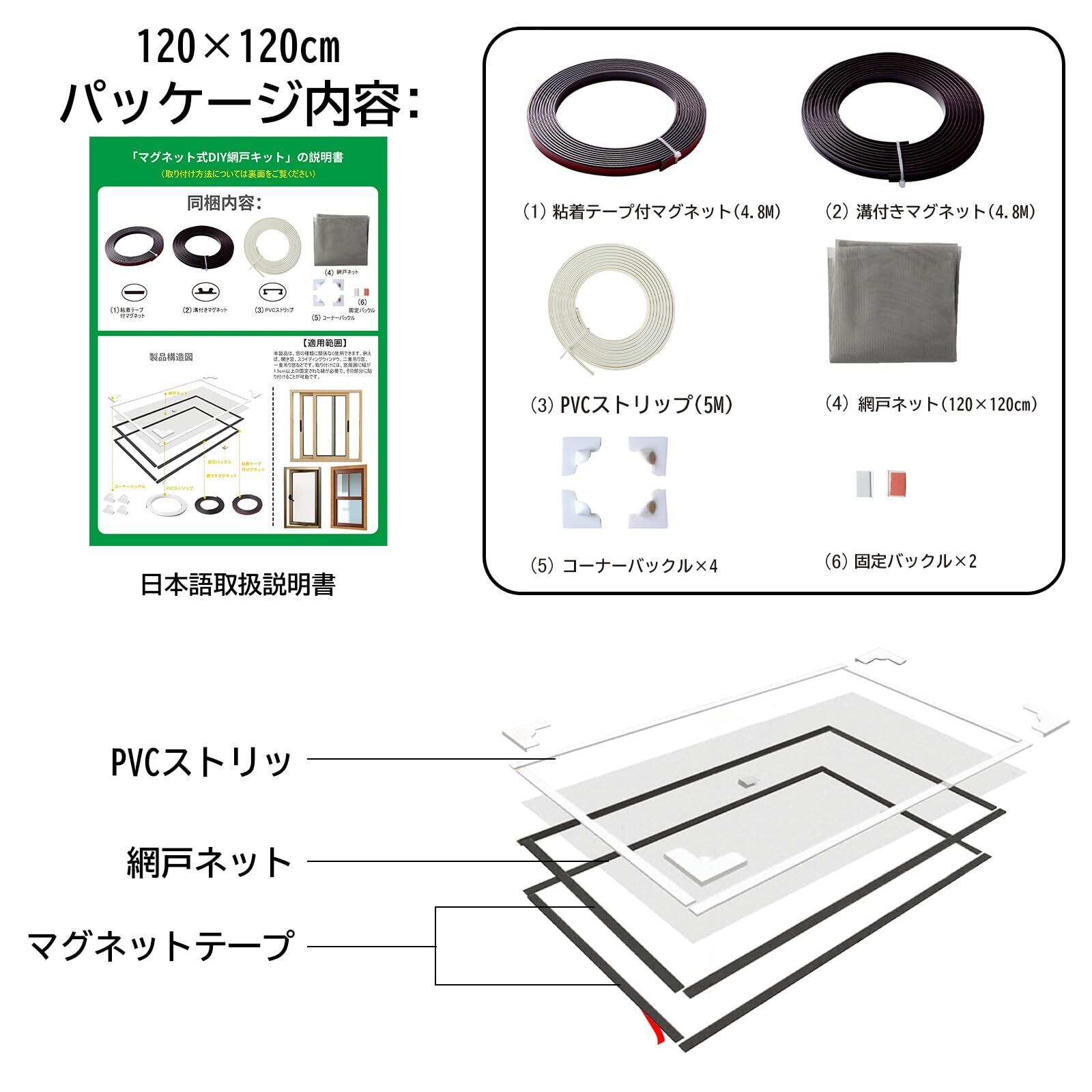 SereneSol 網戸キット マグネット 新型 ネット強化版 DIY 内窓 虫除け 小窓用 簡易網戸 花粉対策 ホコリ対策 取り付け 張り替え (灰色枠120cm×120cm)