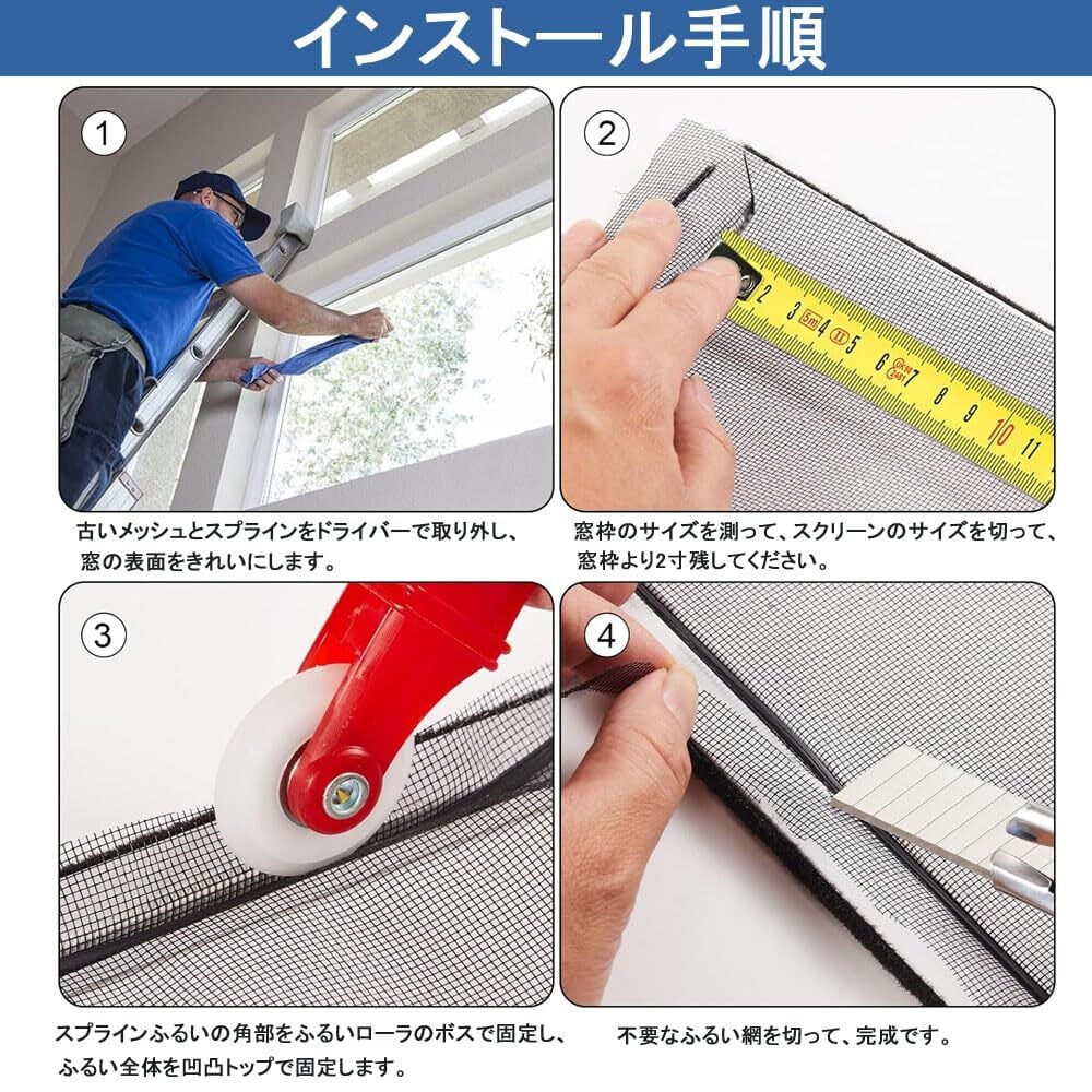 【製品サイズ】網戸 張り替え用 ローラー 長さ: 200mm 、対応ゴム: 2.5mm-5.5mm。網戸用 網押えゴム 太さ約4.5mm、長さ: 10m巻(幅が2.5mm~4.0mm程度の溝を持つ枠に使用できます)。