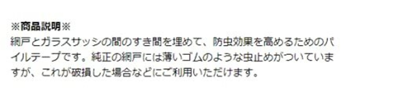本製品は、網戸枠に貼付けて使用するタイプのすき間テープです。