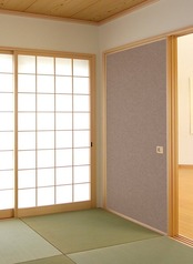 柄は「笹竹」「爛漫」「桜花」「紬」「幾何」「横縞」「箔織」「革茶」「無地」の9種類。ウラ紙をはがしてペタッと貼り付けるだけ! 枠を外せない戸襖(板ふすま)に最適です