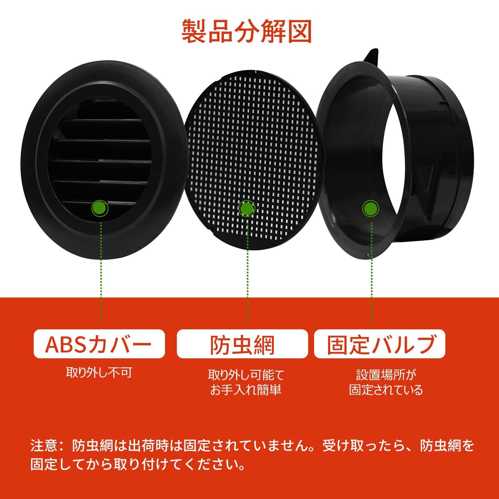 【ABS製換気口】本製品は、高品質のABS樹脂製で、十分な強度でより丈夫になりました。ABS材質は、耐食性と耐熱性だけでなく、環境にも優しいです。金属素材に比べて錆びたり熱くなったりしません。したがって、換気に適しています。