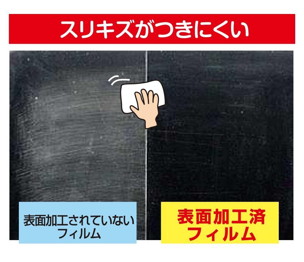 品質表示/耐熱温度80度:ハードコート(スリキズ防止処理)・ポリエステル・粘着剤(アクリル酸エステル樹脂)・保護フィルム