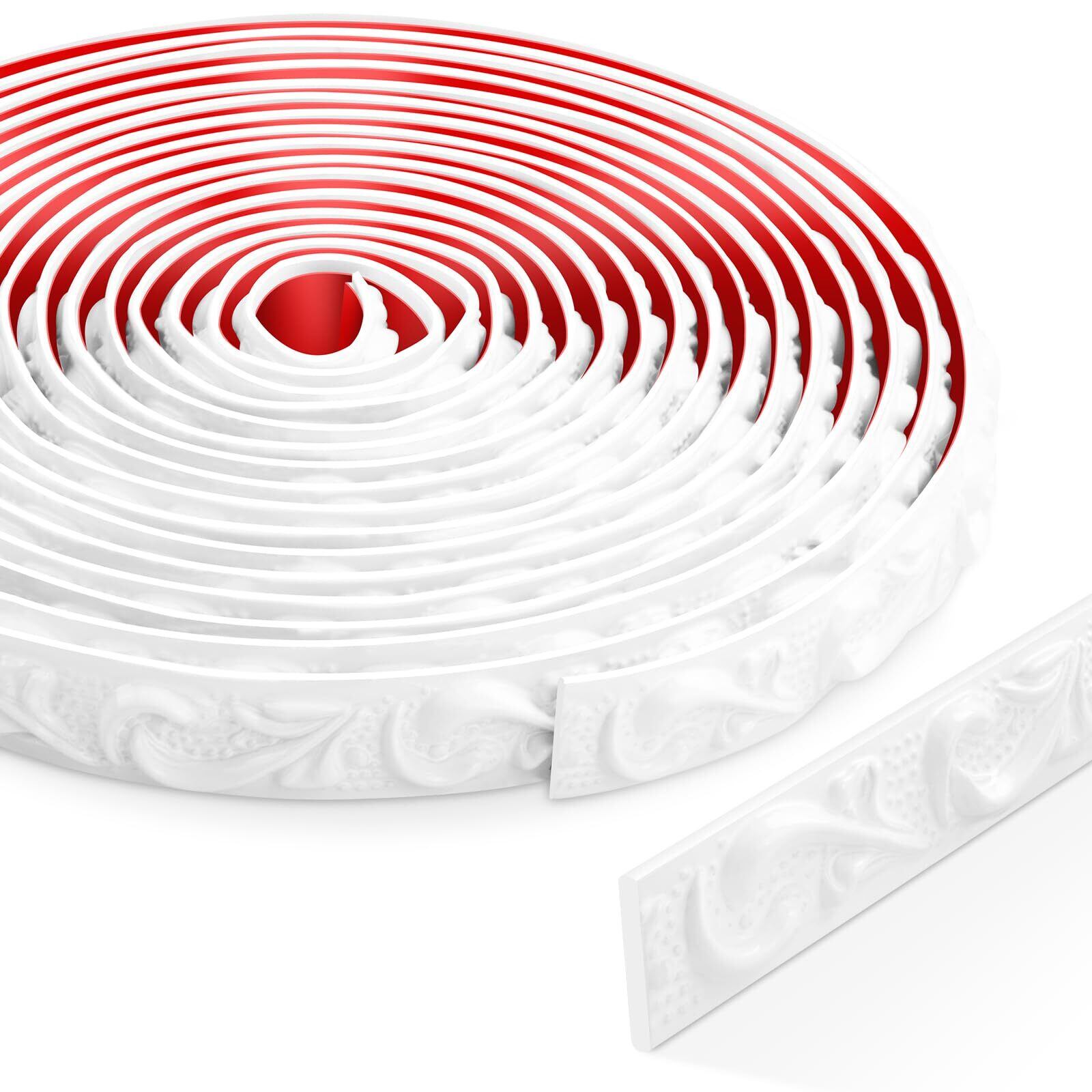 6 メートル ピールアンドスティック 壁用トリム、3D PVC コーナートリム、自己粘着性 モールディングトリム 鏡枠、食器棚の扉、ドア枠、天井、ホームデコレーション用(ホワイト)