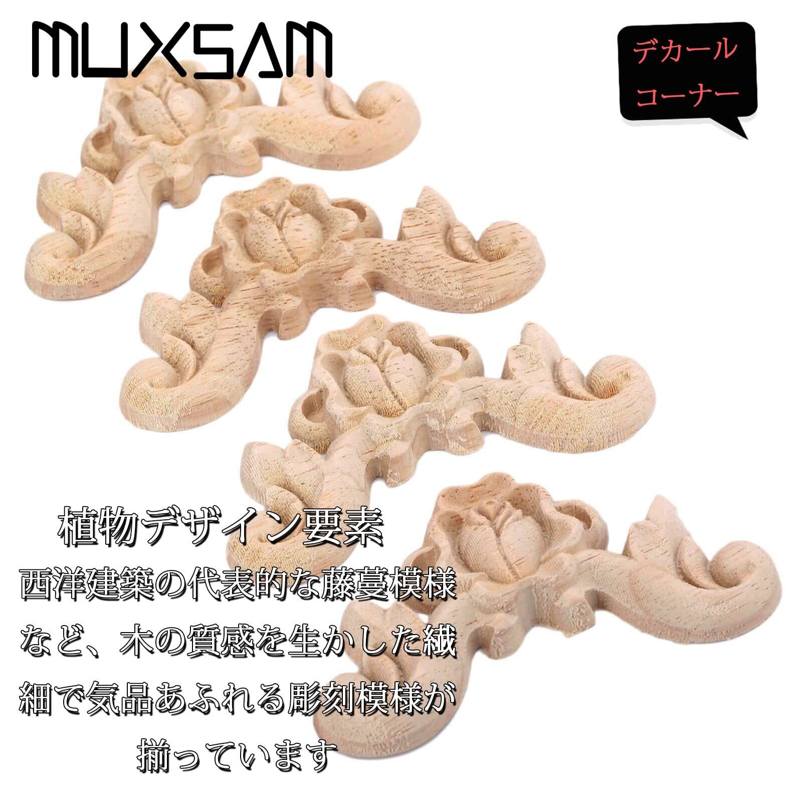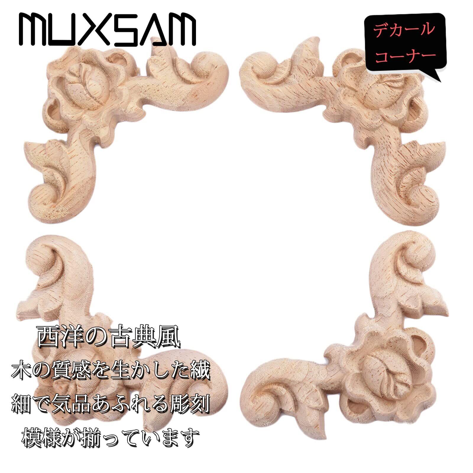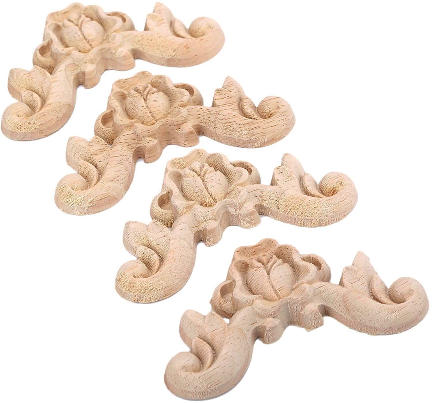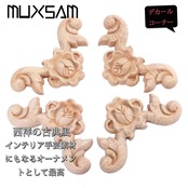4枚入りセット 木彫りデカールコーナー 木製アップリケ 家具装飾 ヨーロッパスタイル 家具 ドア 壁 北欧風 コーナー デコレーション ホームデコ 未塗装 6x6cm