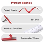 取り付けは簡単: 必要な長さを測ってカットし、貼り付ける部分をきれいにして乾いた状態にしておきます。幅木トリムの粘着性のおかげで、裏側の赤い裏紙を剥がして貼り付ける部分に強く押し付けるだけで済みます。追加の工具を使わずに取り付けを完了でき、便利で効率的な装飾体験を楽しむことができます。