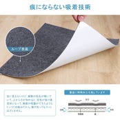 【ずれない 吸着タイルカーペット】空気が抜け真空状態になって無数の吸盤ができたようなくっつく仕組みだから、動き回ってもマットはズレません。厚み約4mmのマットですので、つまずきにくく、扉の開閉の妨げにもなりません。引っ掛かったりする恐れが少なくなる。高齢者や老犬は足腰が弱くなり、滑り止め対策として良いものです。