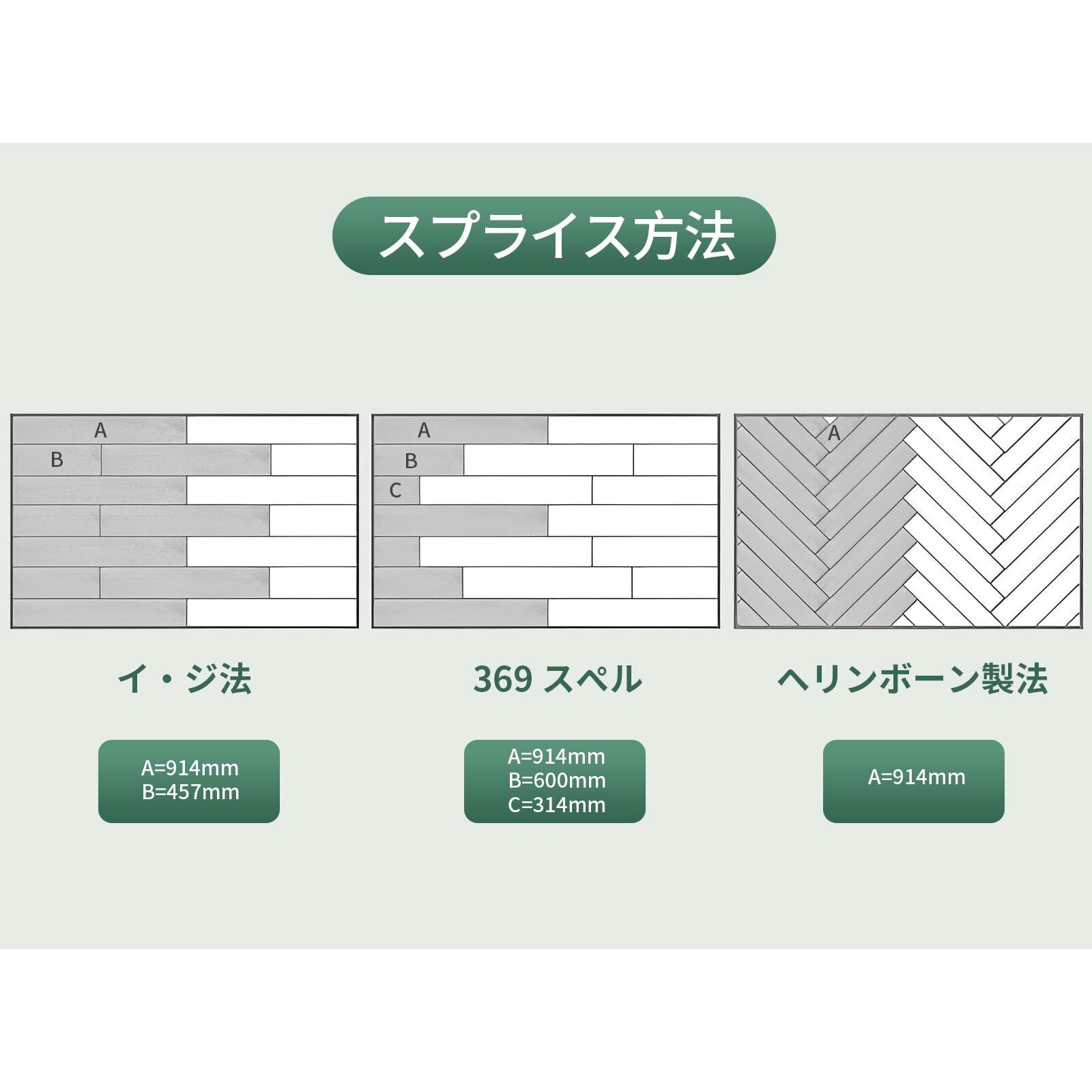 【使用場所とサイズ】賃貸住宅の床、畳、玄関ホール、床暖房、トイレ、防水、店舗、洗面所、バスルーム、脱衣所、洗面台、リビング、キッチン 1シートサイズ:914.4×152.4mm 厚さ2mm